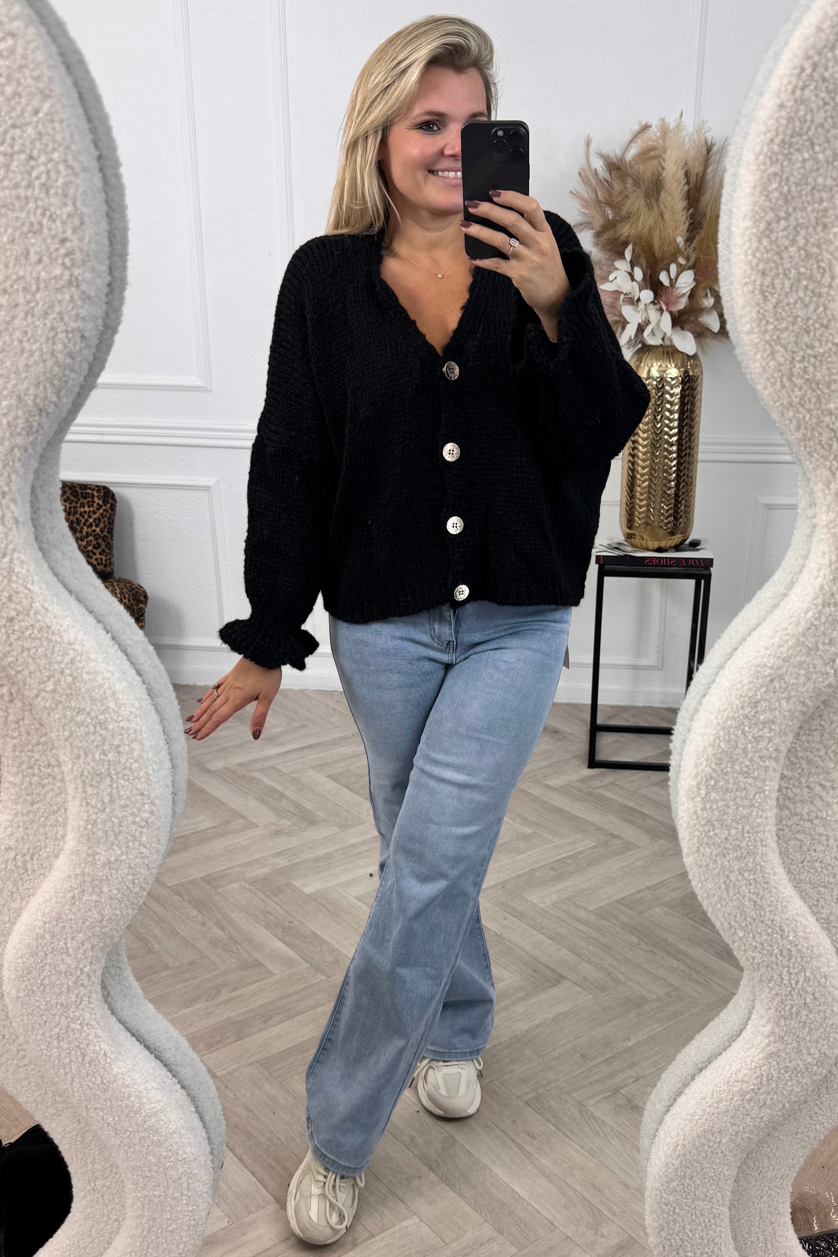Wat een fantastische vesten zijn dit! Heerlijk warm en ook nog eens leuk voor het oog! Shop het ruffle sleeve knitted vest nu in black!