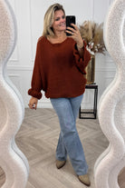 Een heerlijke trui voor de koude dagen! De trui heeft een klein open rug detail, dit is te zien bij de foto's van de trui in brown! Ook heeft hij leuke uitlopende mouwen met een asymmetrische look! Shop de bat sleeve ruffle sweater nu in rusty!