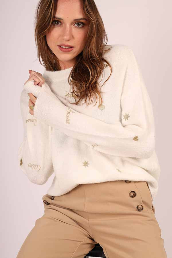 Hoe lovely is deze trui, of beter gezegd: une chemise l'amour! Shop deze prachtige sweater nu in beige!
