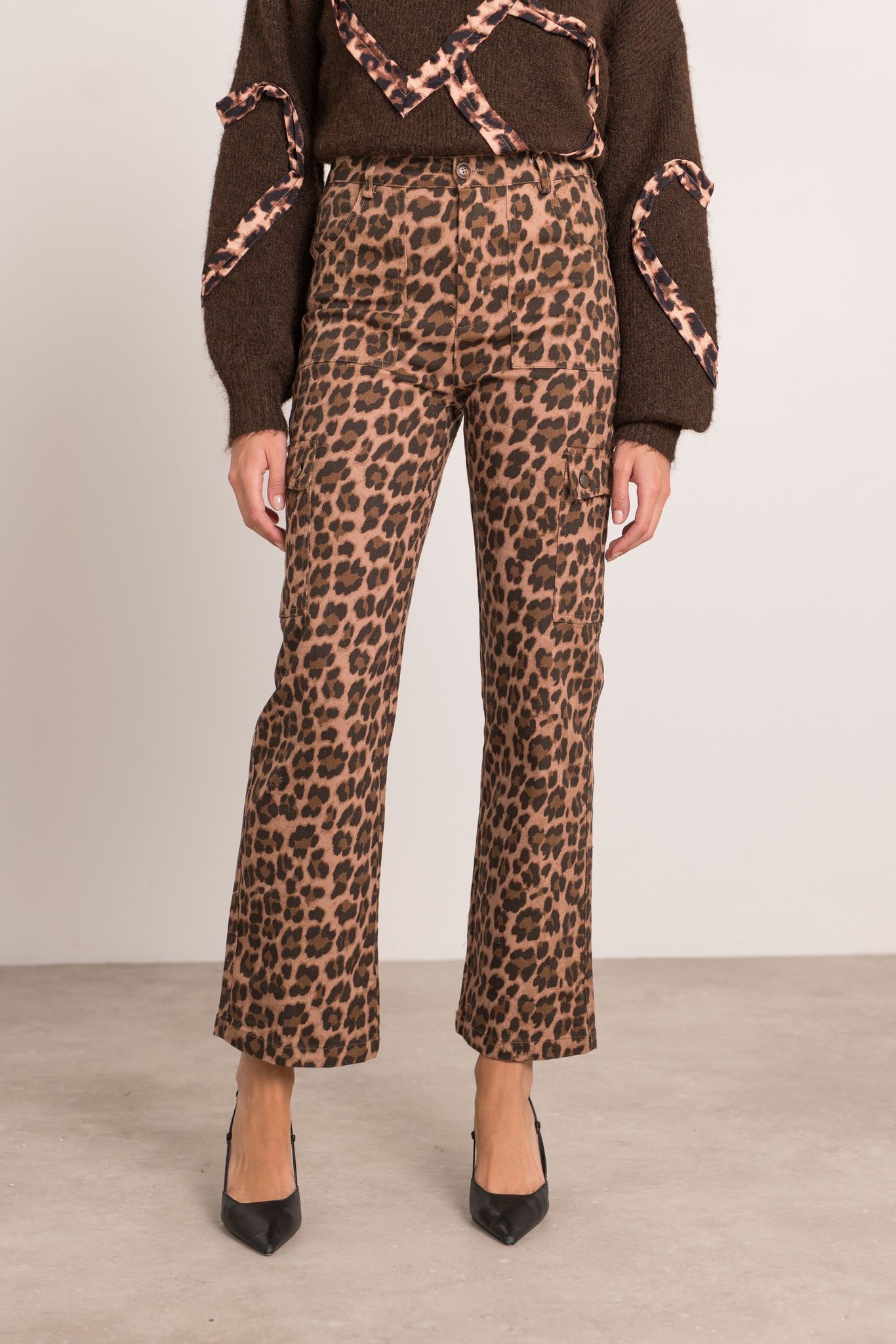 Leopard Cargo Pants - Brown