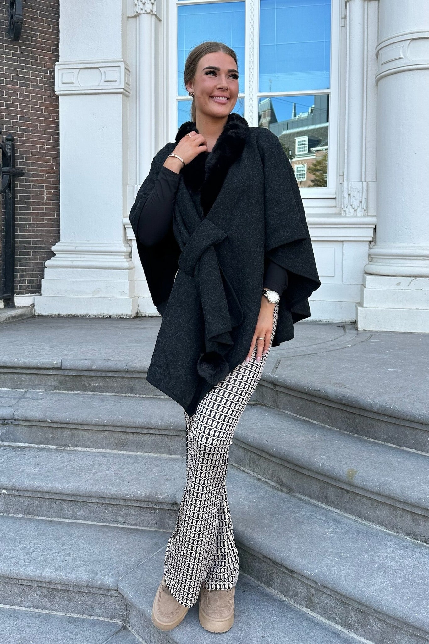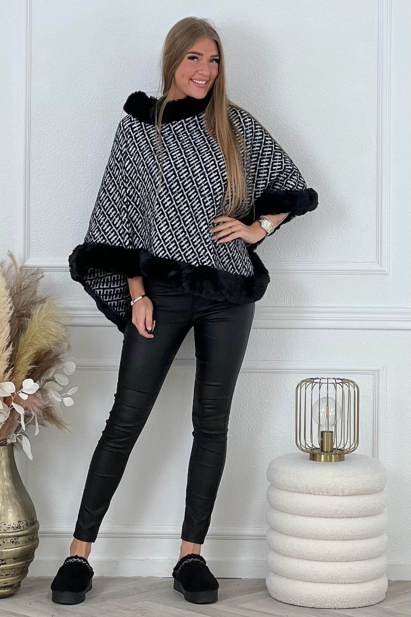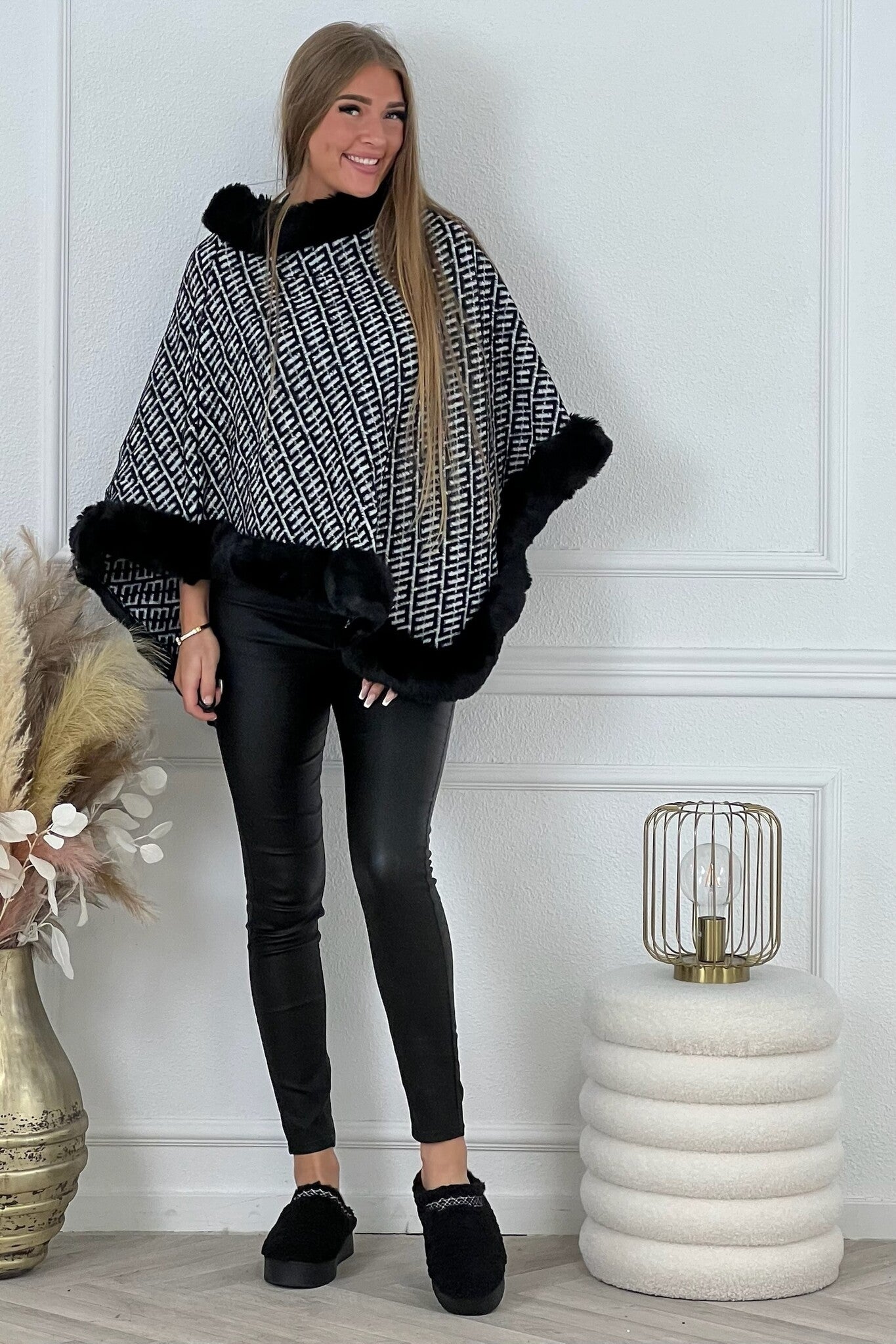 Wonderful Fall Poncho - Black/Taupe/Pink