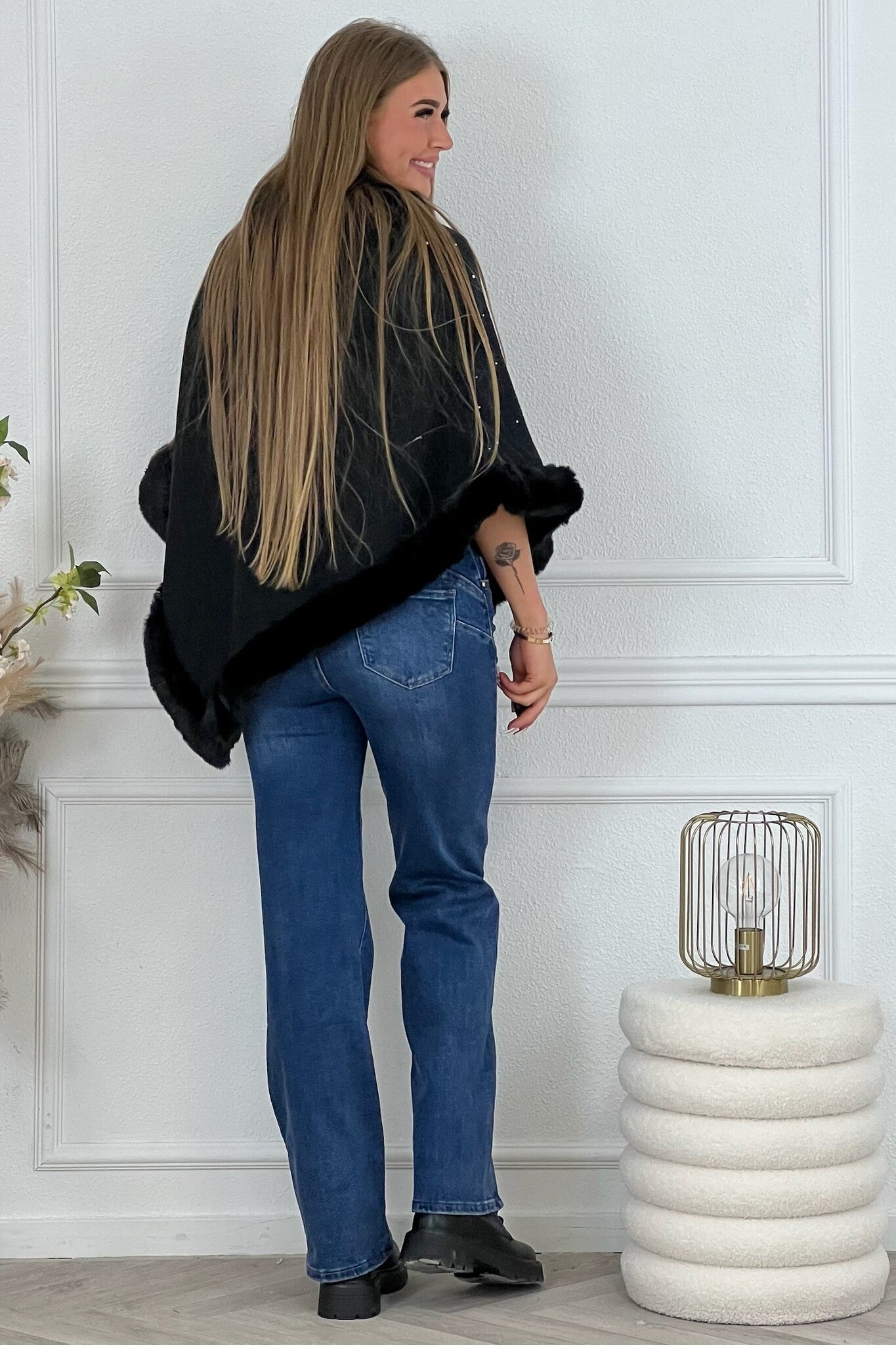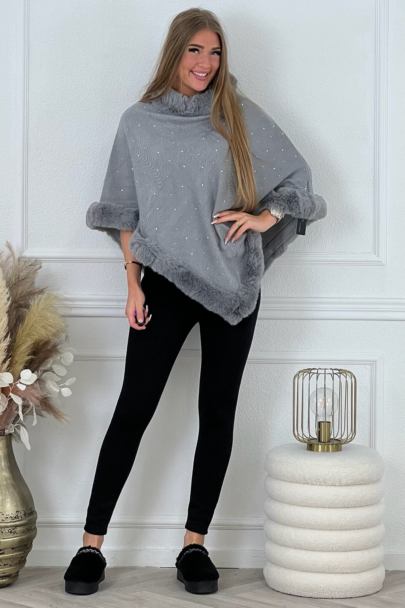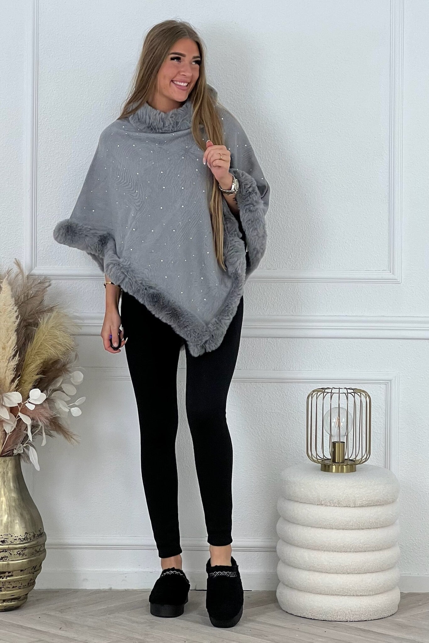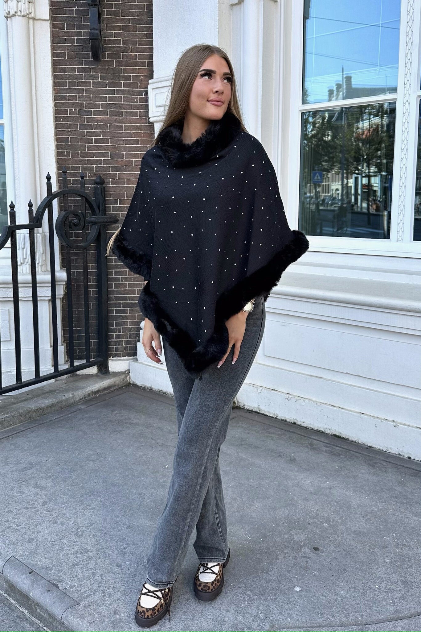Wonderful Fall Poncho - Black/Taupe/Pink