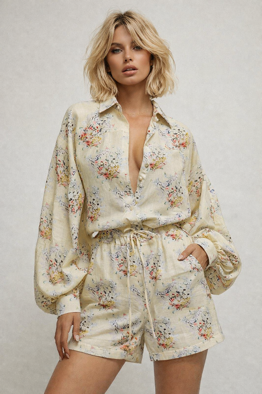 Perfect Jasmin Flower Playsuit - Beige