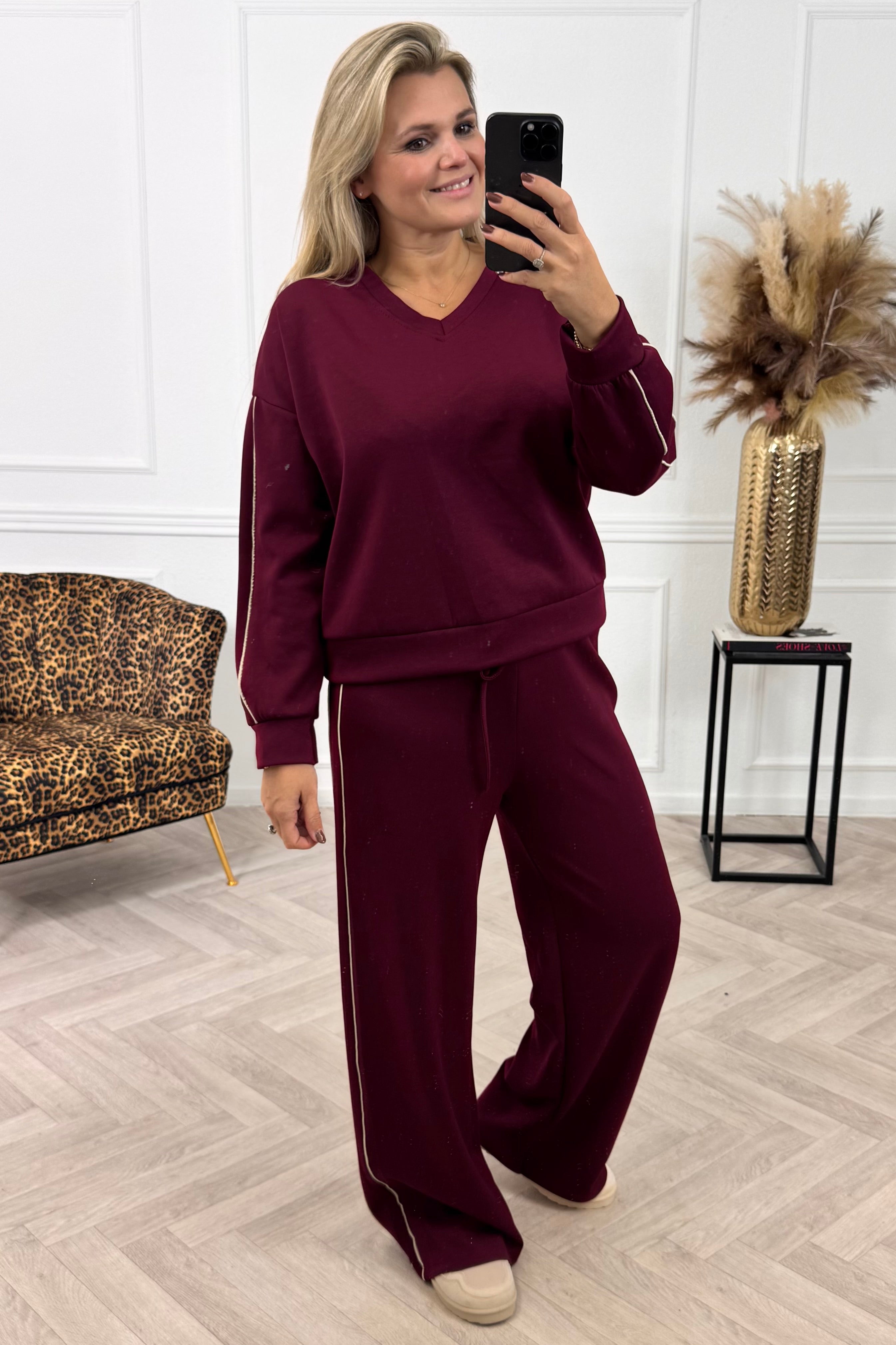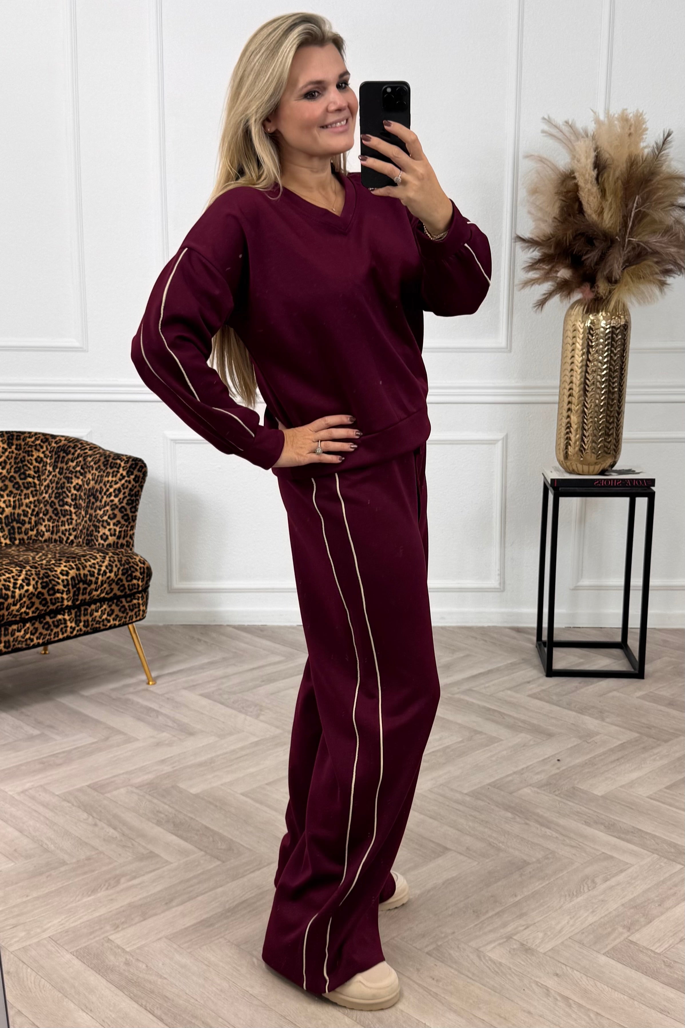 Een heerlijke jogging set, dat er ook nog eens leuk uitziet! shop de comfy stripe set nu in bordeaux!