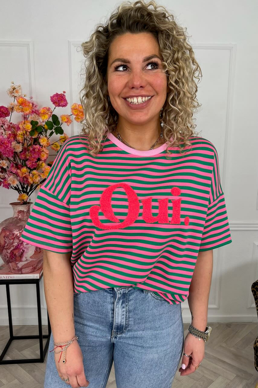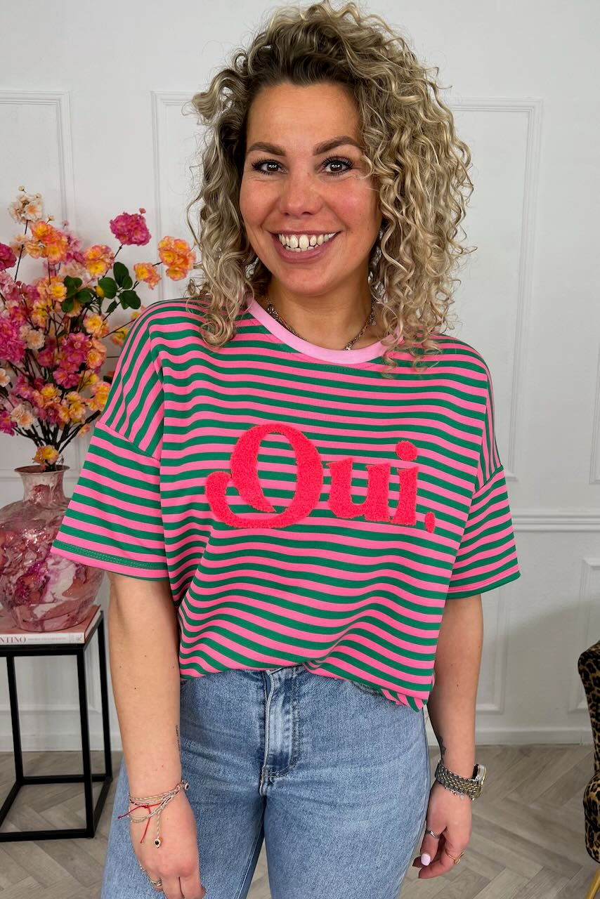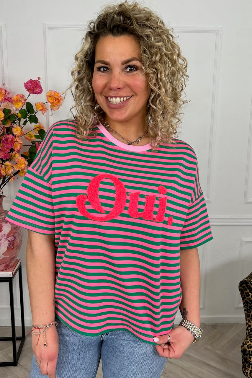 Striped Oui Shirt - Green/Pink