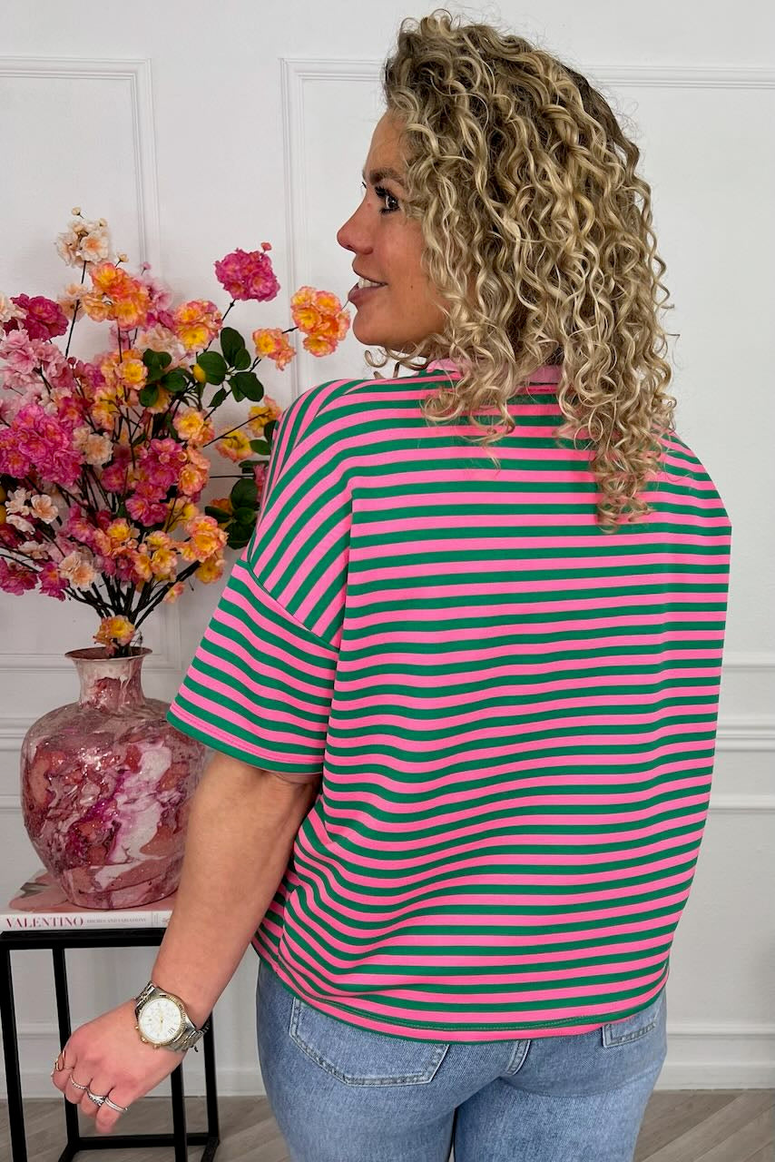 Striped Oui Shirt - Pink/Green
