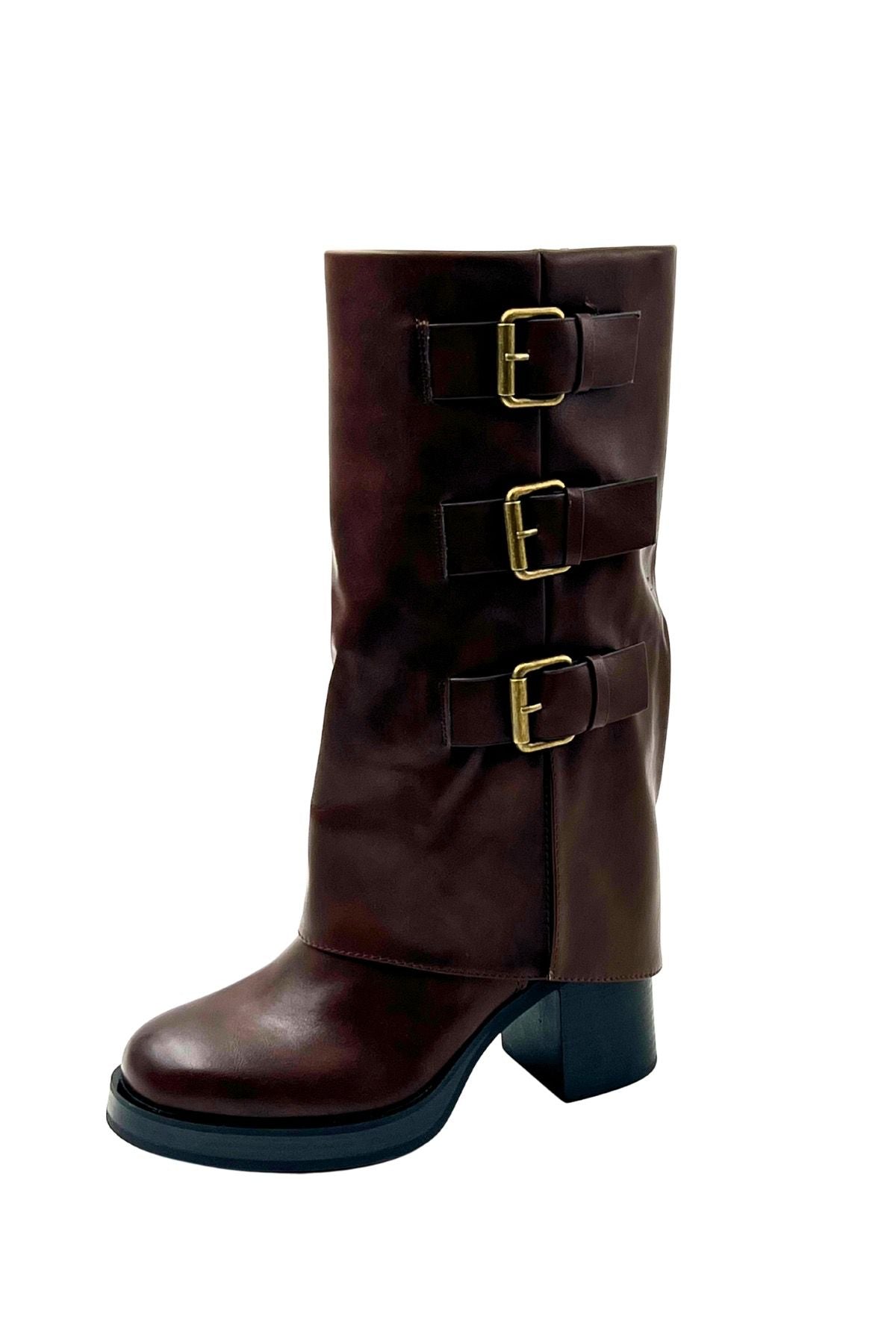 We hebben weer mega leuke laarzen binnen! Een mooie nep leren laars met drie gespen en een mooie hoge blokhak. Shop de high triple buckle boots nu in brown!