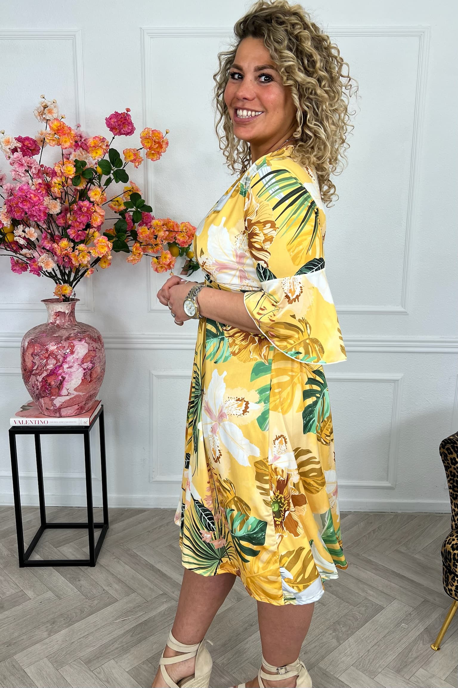 Onze signature dress is terug! Shop onze short knotted dress online in nieuwe prints! Shop hem in forest light yellow!
