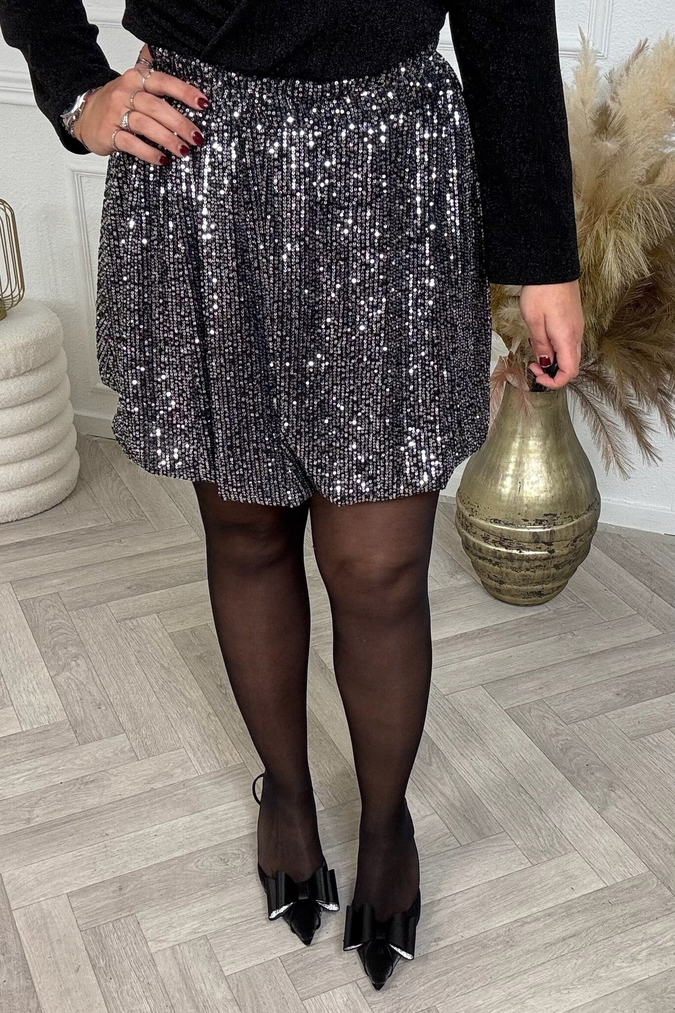 Curvy Sequin Balloon Skirt - Grey