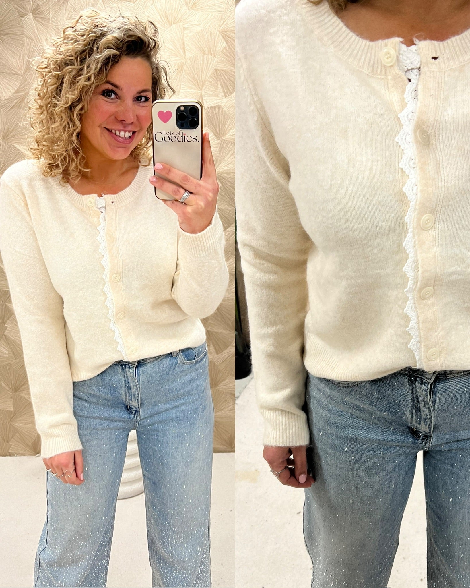 Deze prachtige lace sweater zit bijzonder comfy en ook nog eens super stylish. Combineer hem met een leuke jeans! Shop hem in beige!
