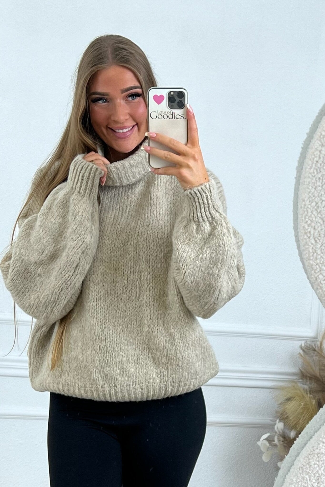 We hebben weer een heerlijke sweater met een coll binnen! Shop hem in Taupe!