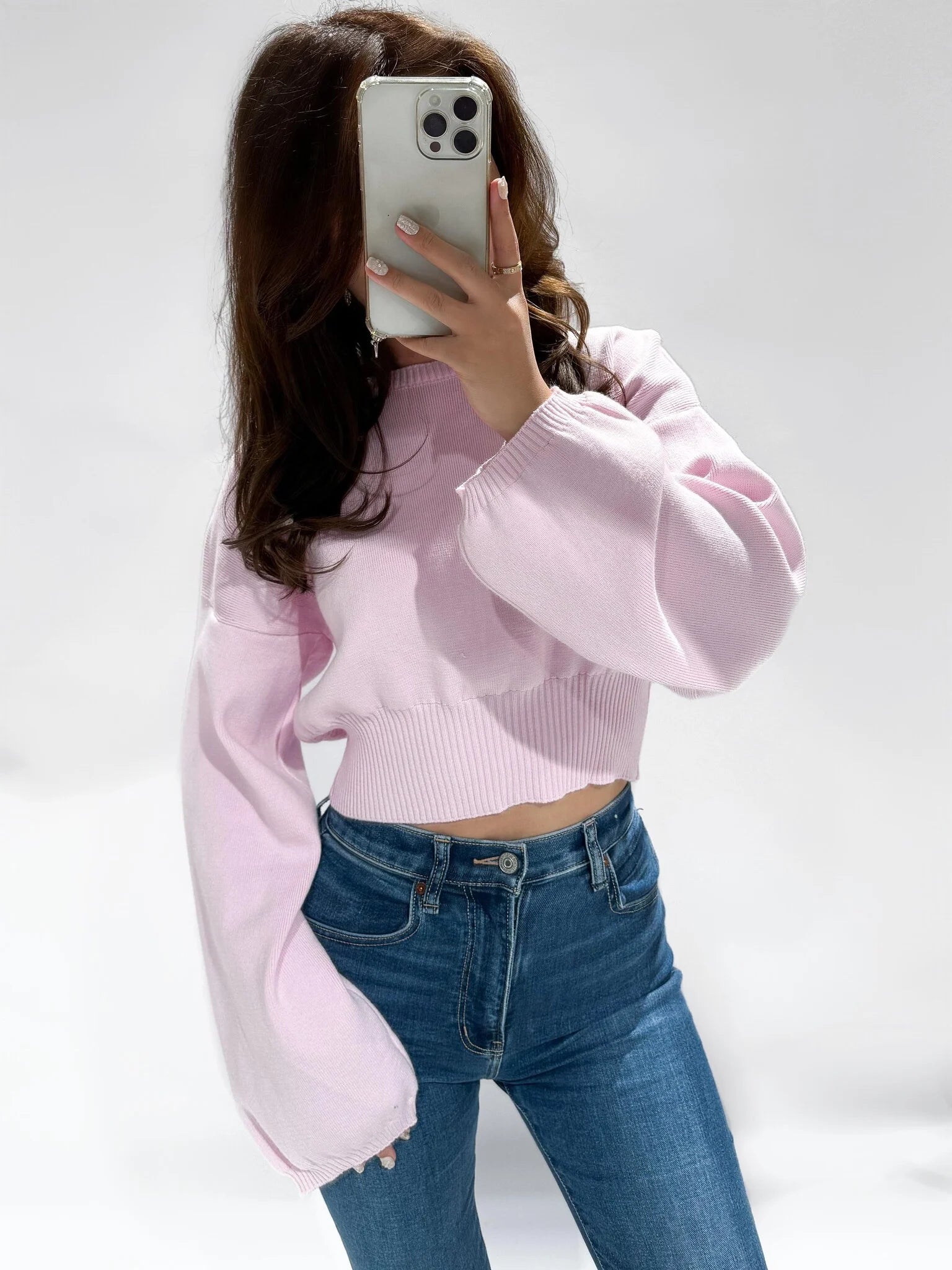 Deze leuke cropped sweater met wijde mouwen kan niet ontbreken in jouw kast! Shop hem nu in lightpink.