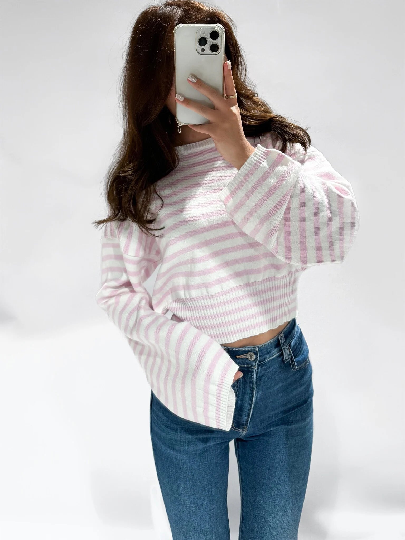 Deze leuke cropped sweater met wijde mouwen kan niet ontbreken in jouw kast! Shop hem nu in lightpink white.