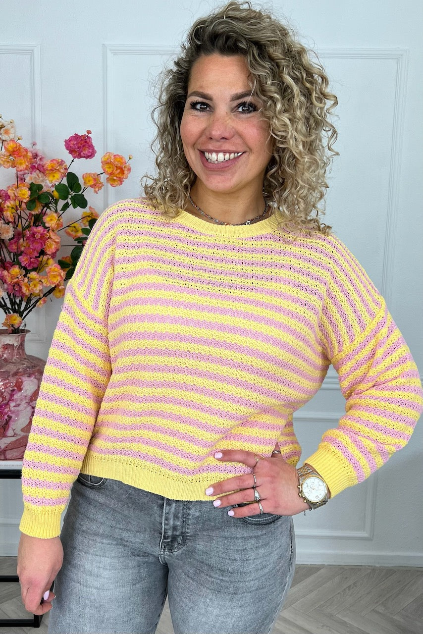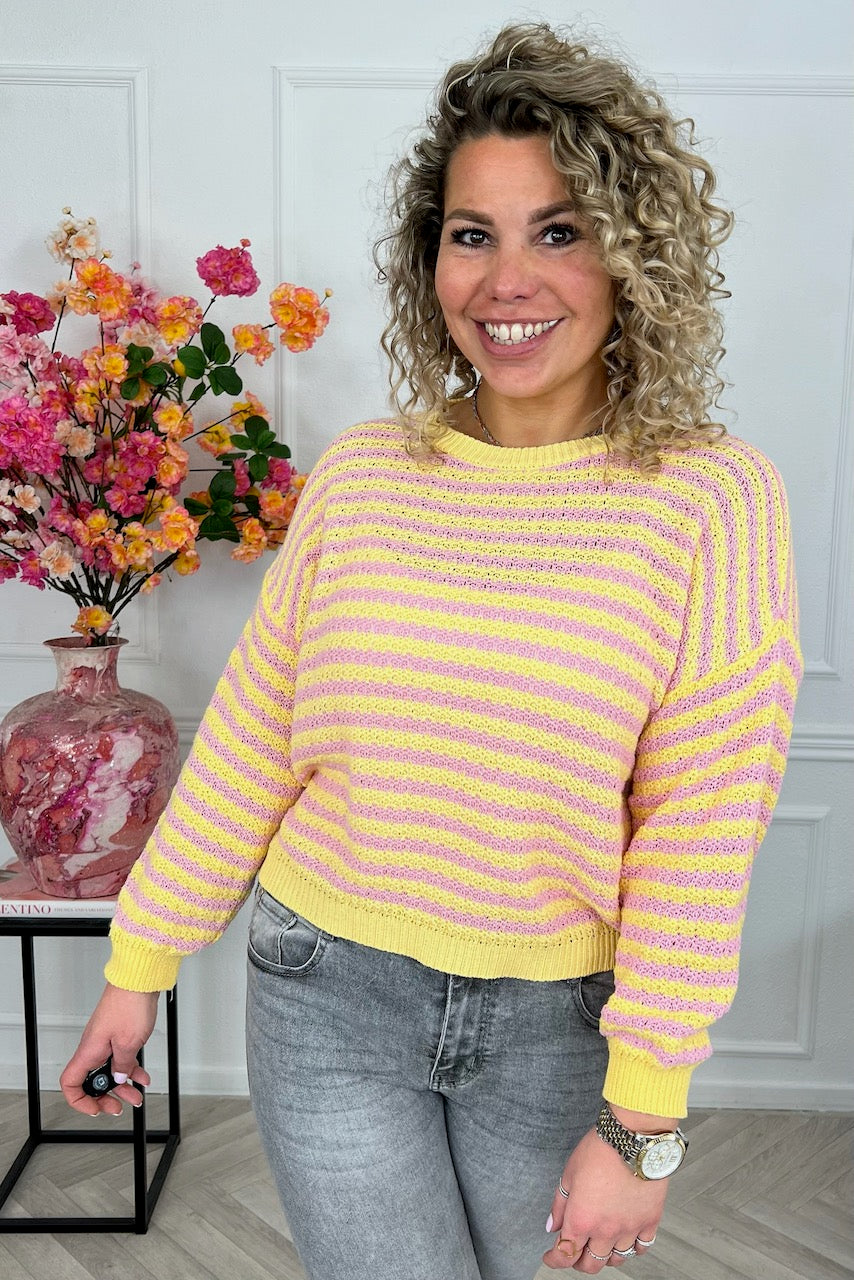 Mila Cotton Striped Sweater - Pink/Yellow