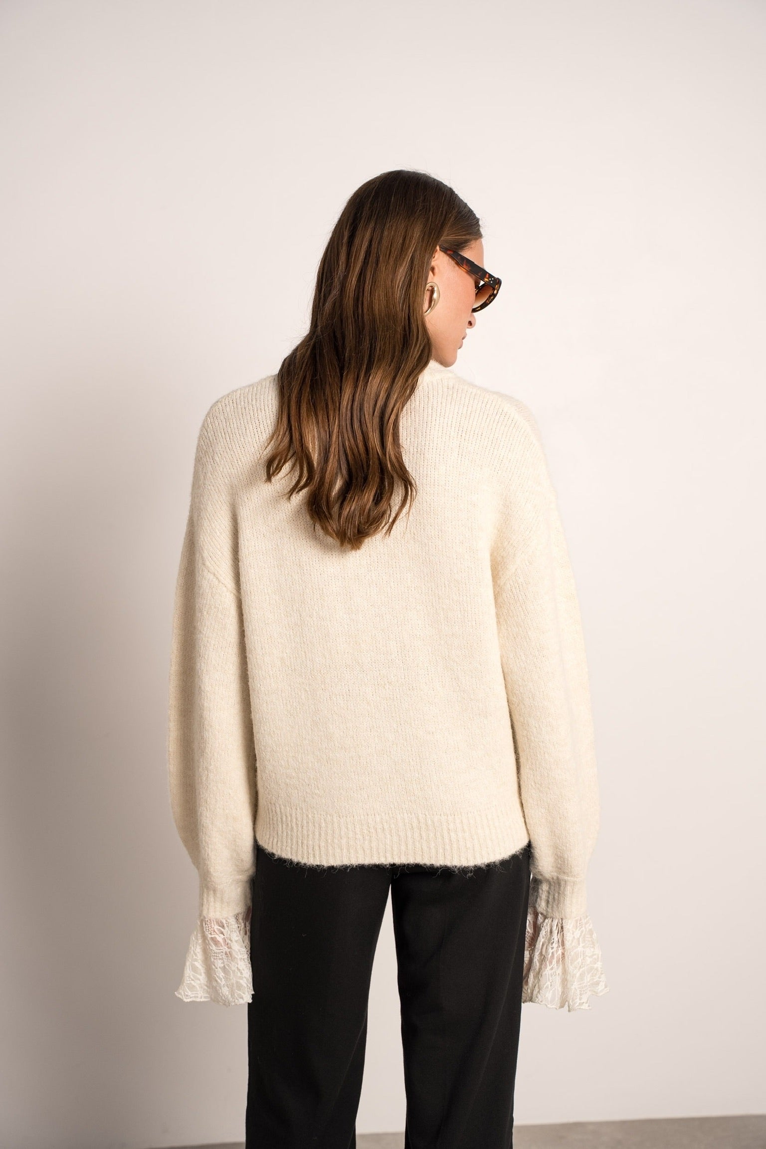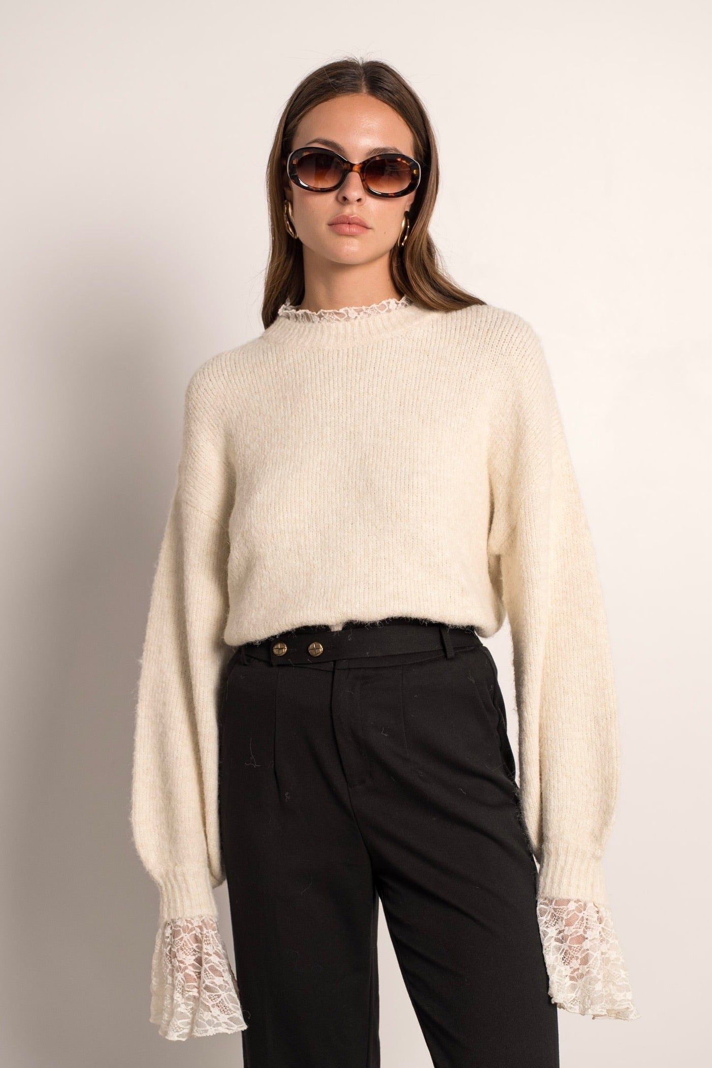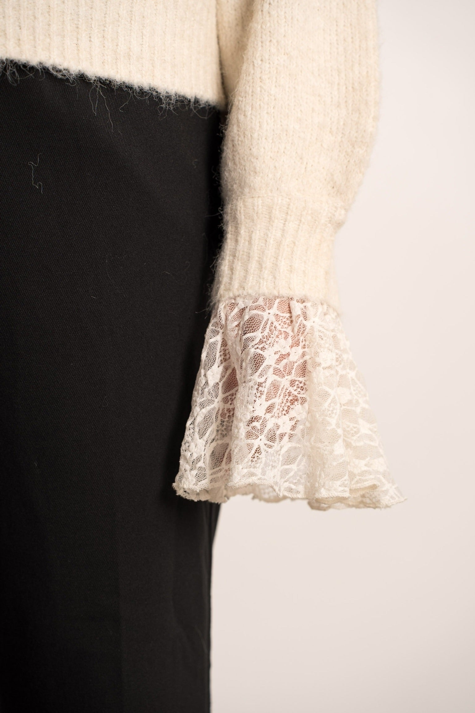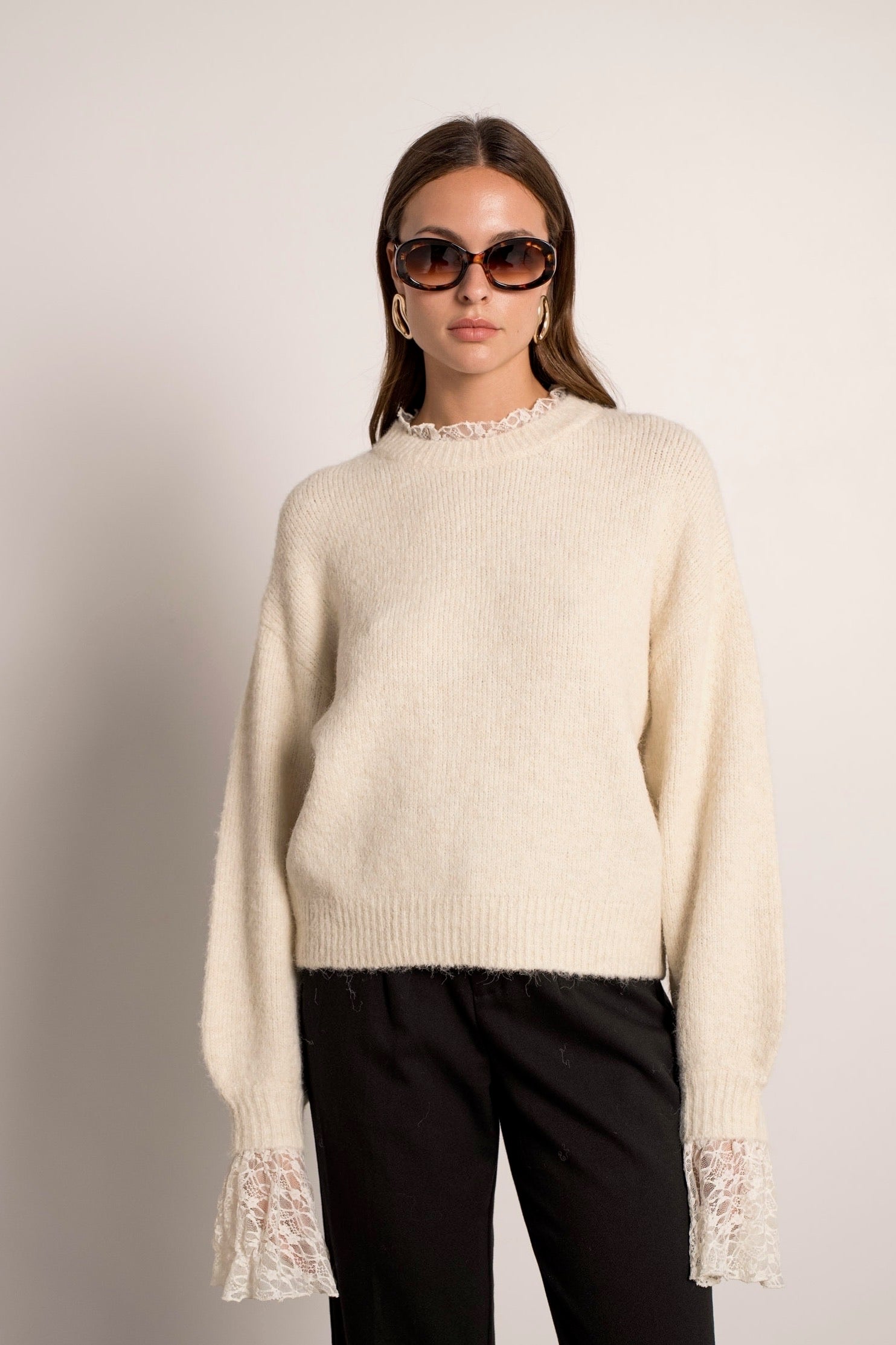 Perfect Lace Sleeve Sweater - Beige
