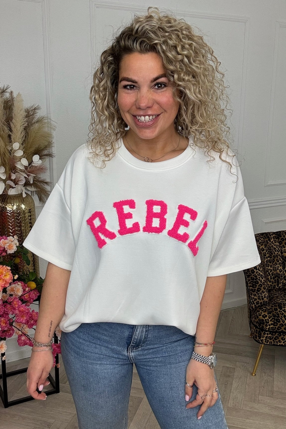 Rebel Short Sleeve Sweater - White/Neon Pink