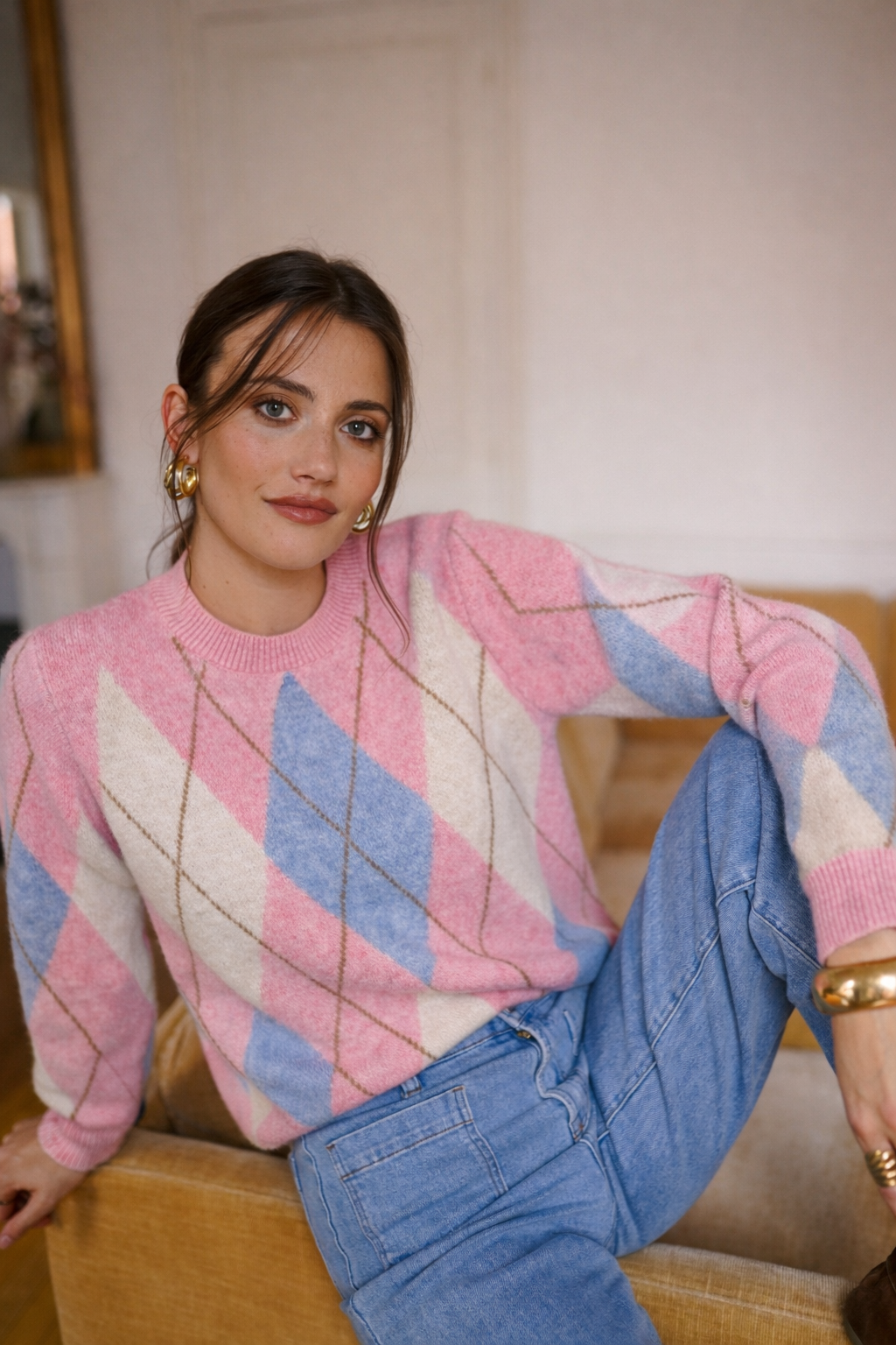 Rosalie Checkered Sweater - Pink/Blue/White