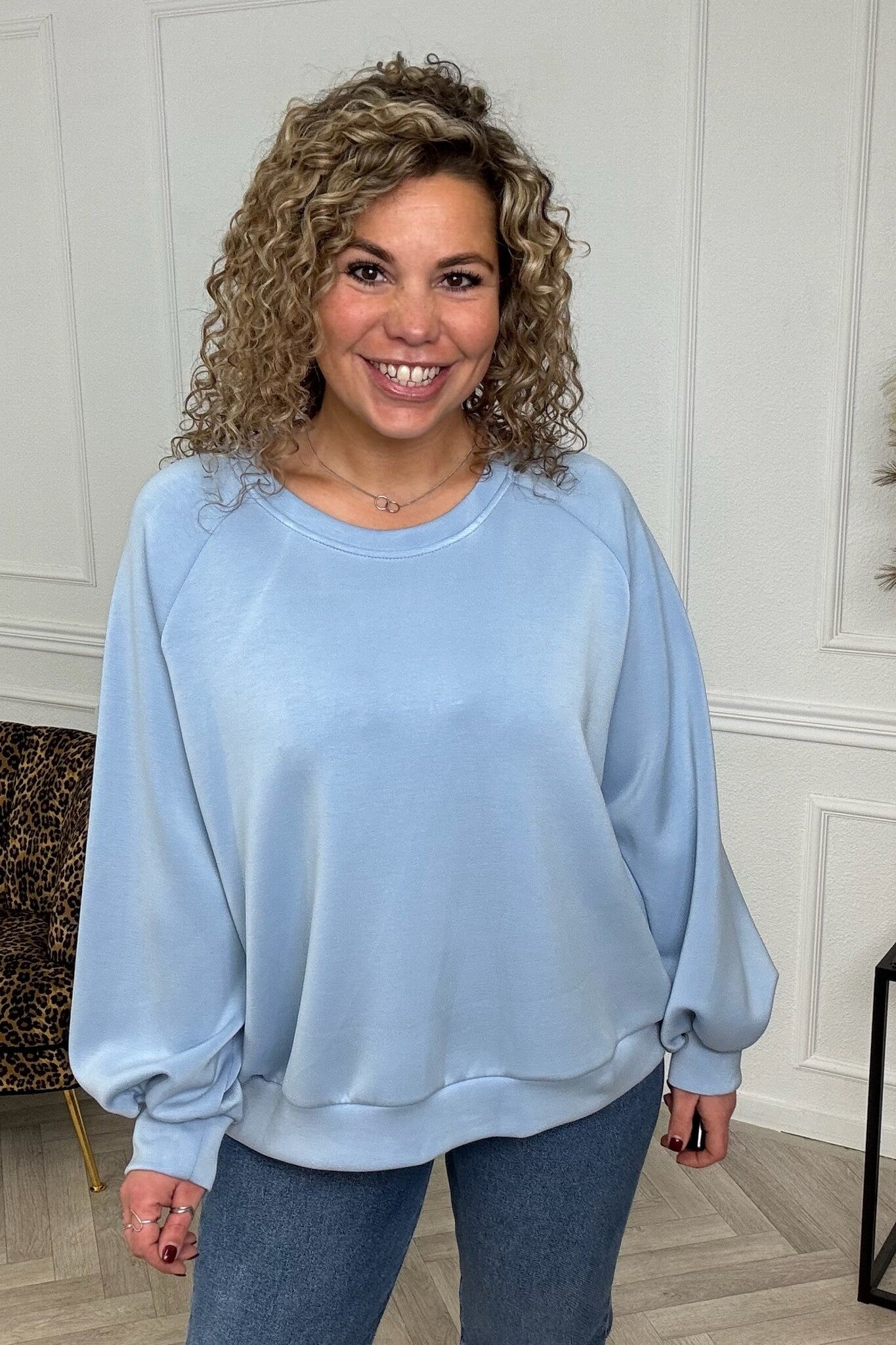 Deze heerlijke zachte basic trui valt lekker ruim! Shop hem in light blue!