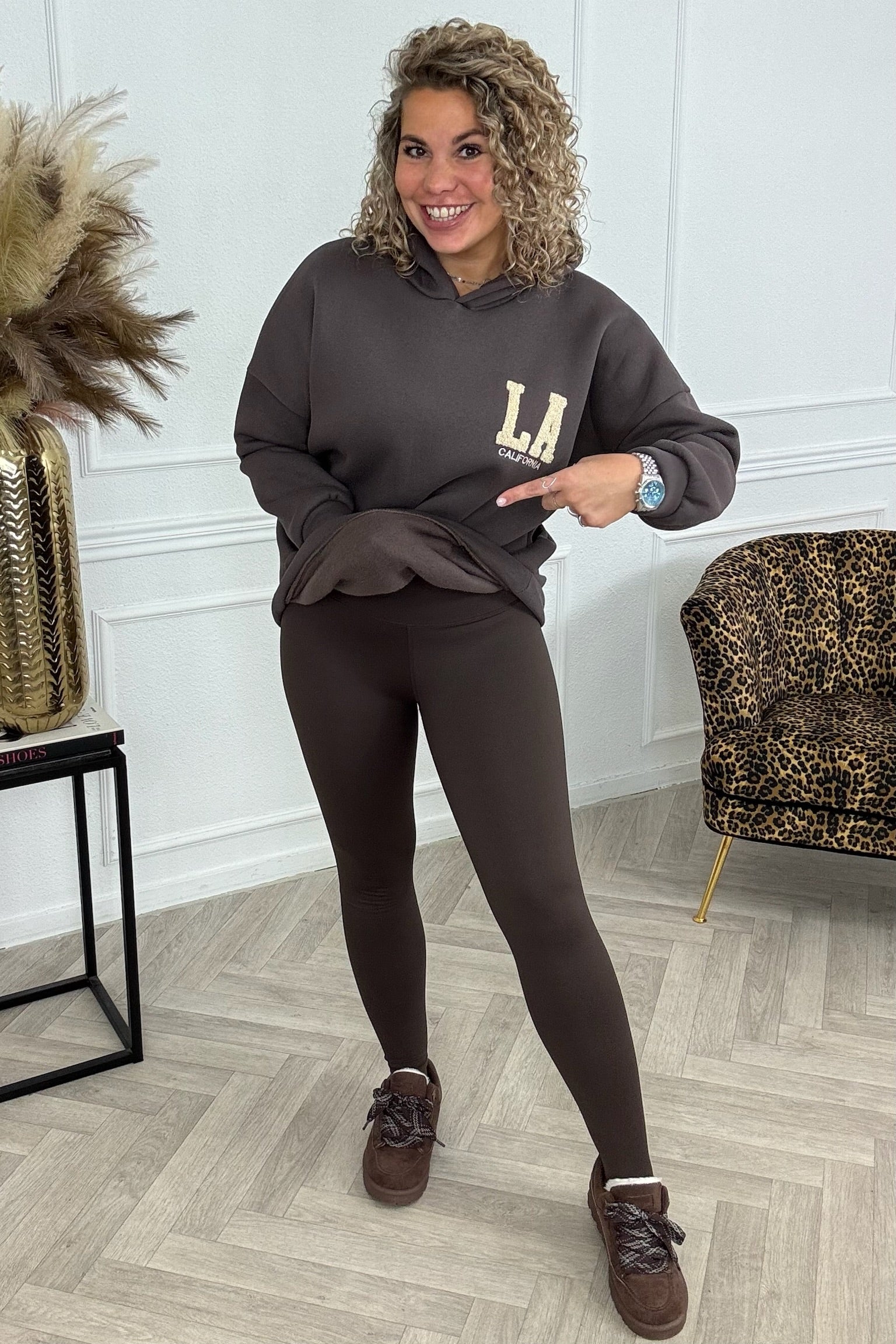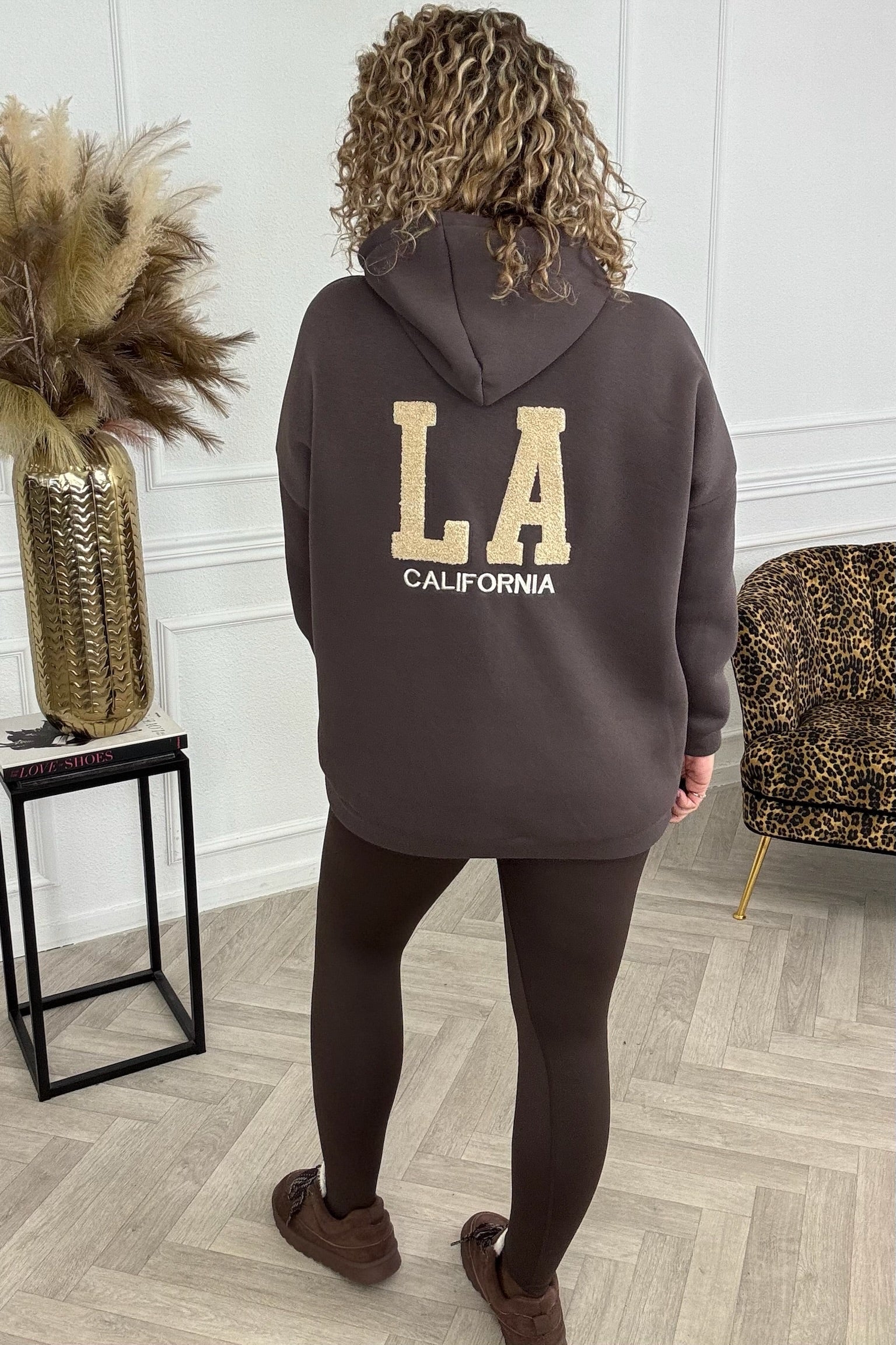 Een fijne zachte trui, met capuchon! Er staat een leuke LA california opdruk op. Shop de soft LA california hoodie nu in brown!