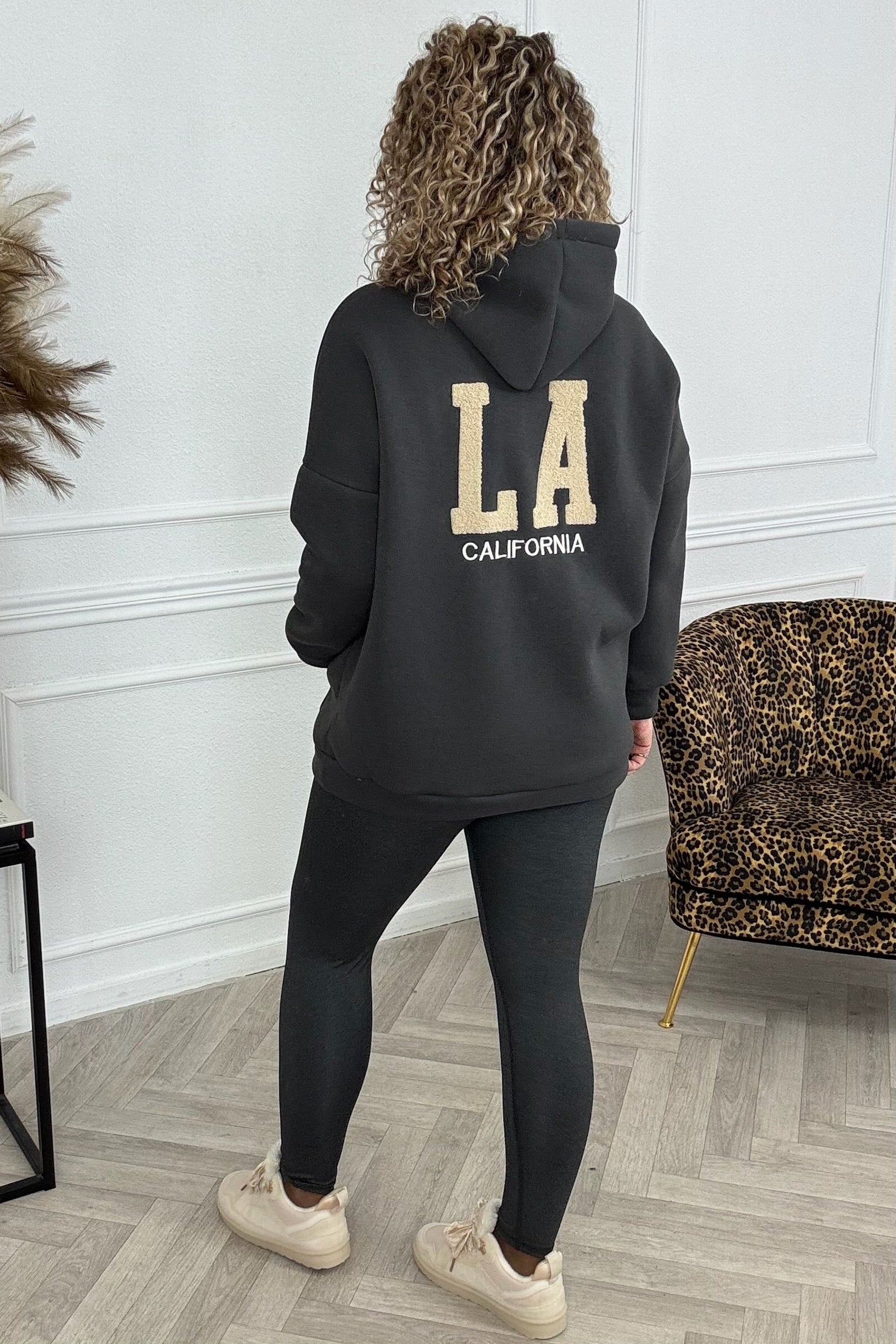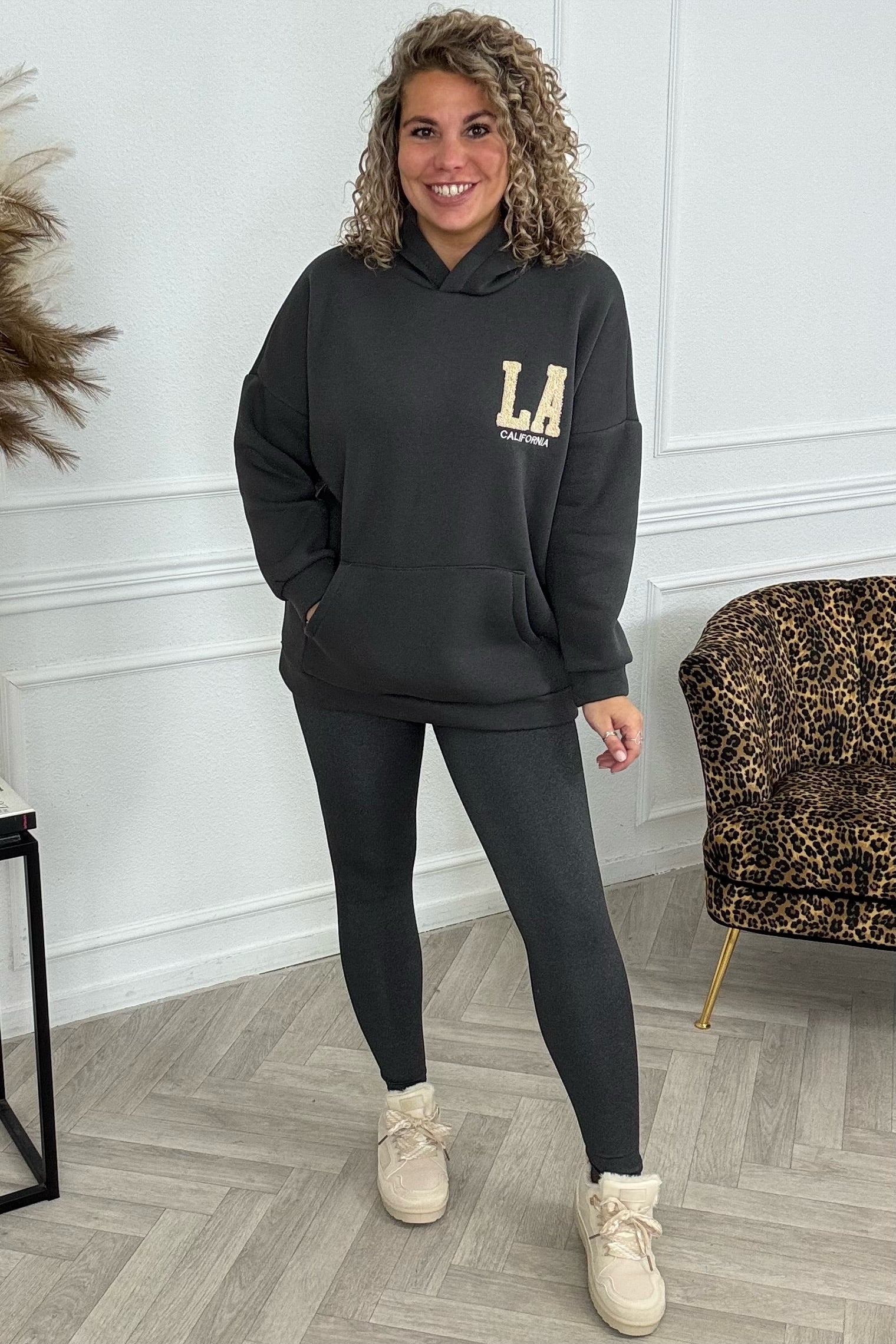 Een fijne zachte trui, met capuchon! Er staat een leuke LA california opdruk op. Shop de soft LA california hoodie nu in dark grey!