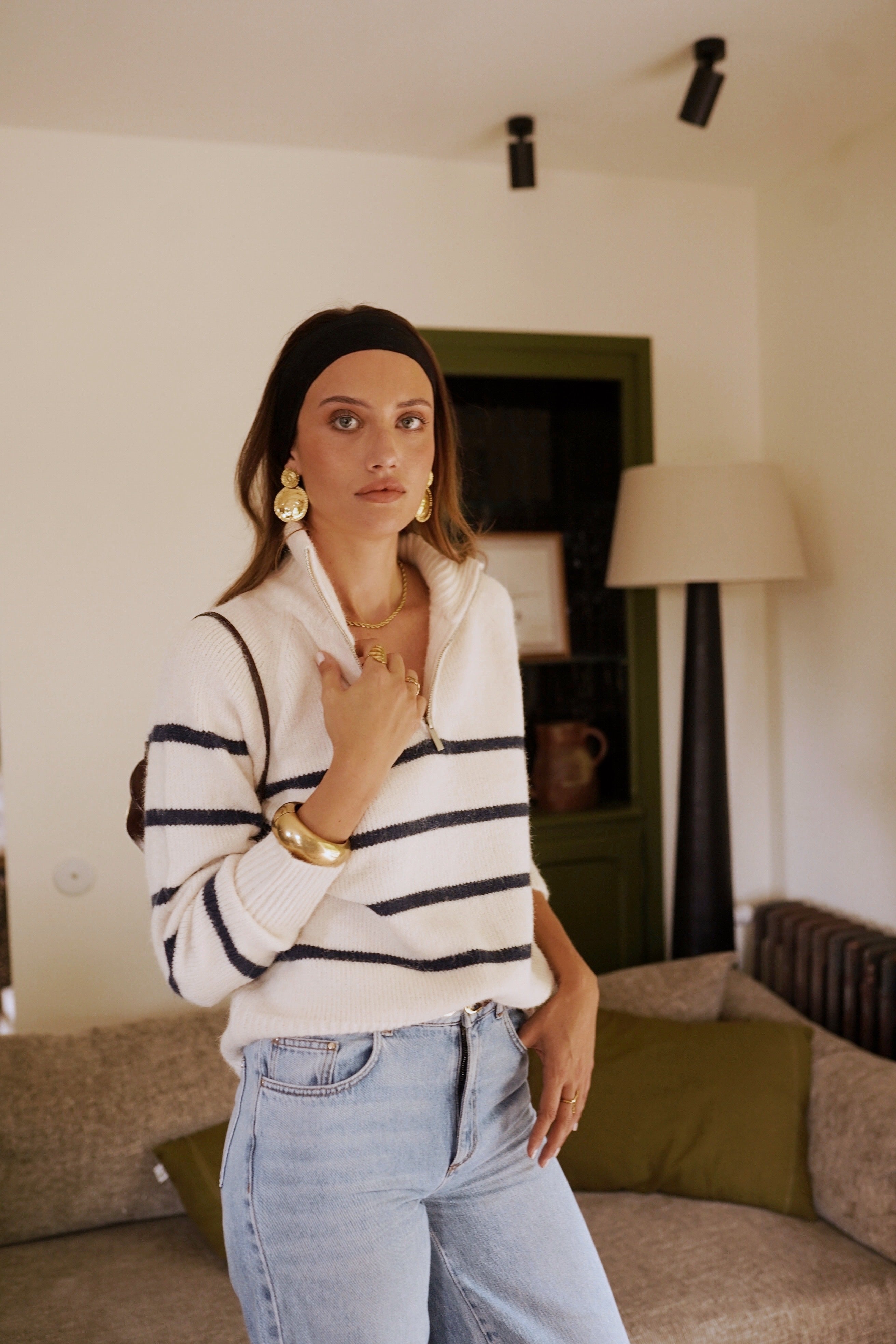 Wat een superleuke basic sweater! Met een halve zip en strepen, zo leuk! Shop hem nu in white/black.