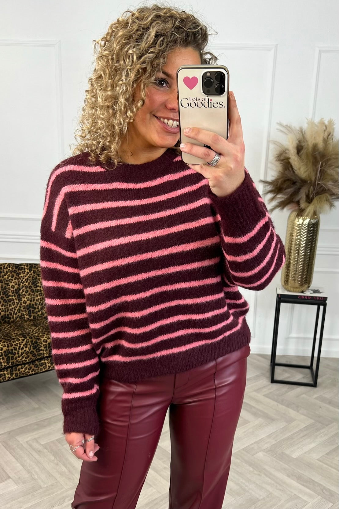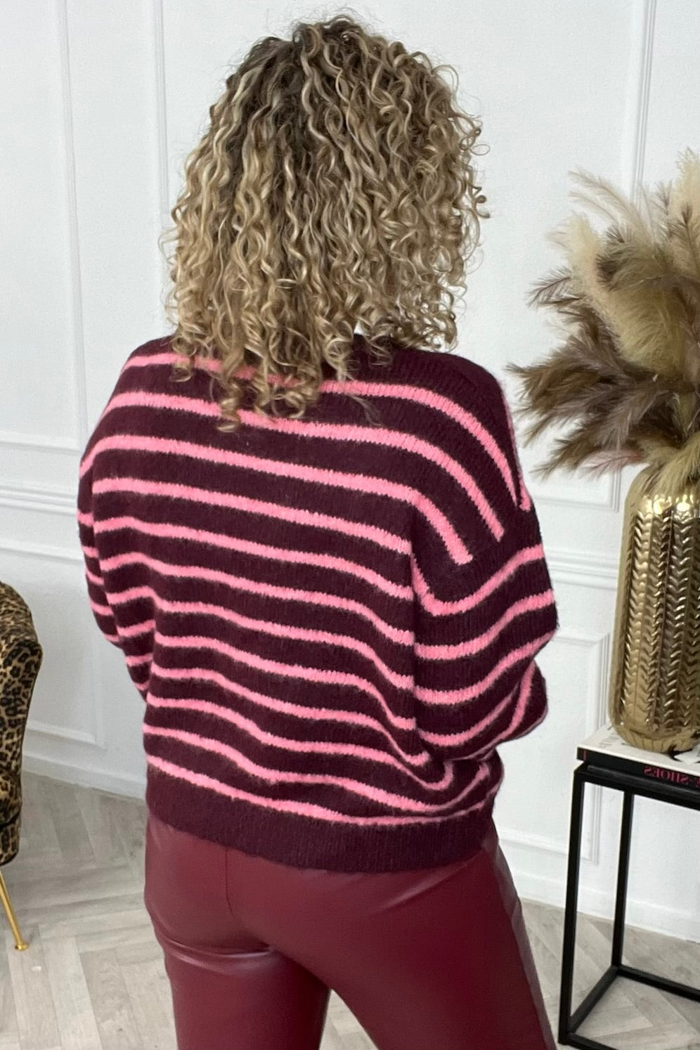 Deze heerlijke trui is ideaal voor deze tijd van het jaar. Prachtige kleuren en op en top trendy! Shop hem in bordeaux/pink!