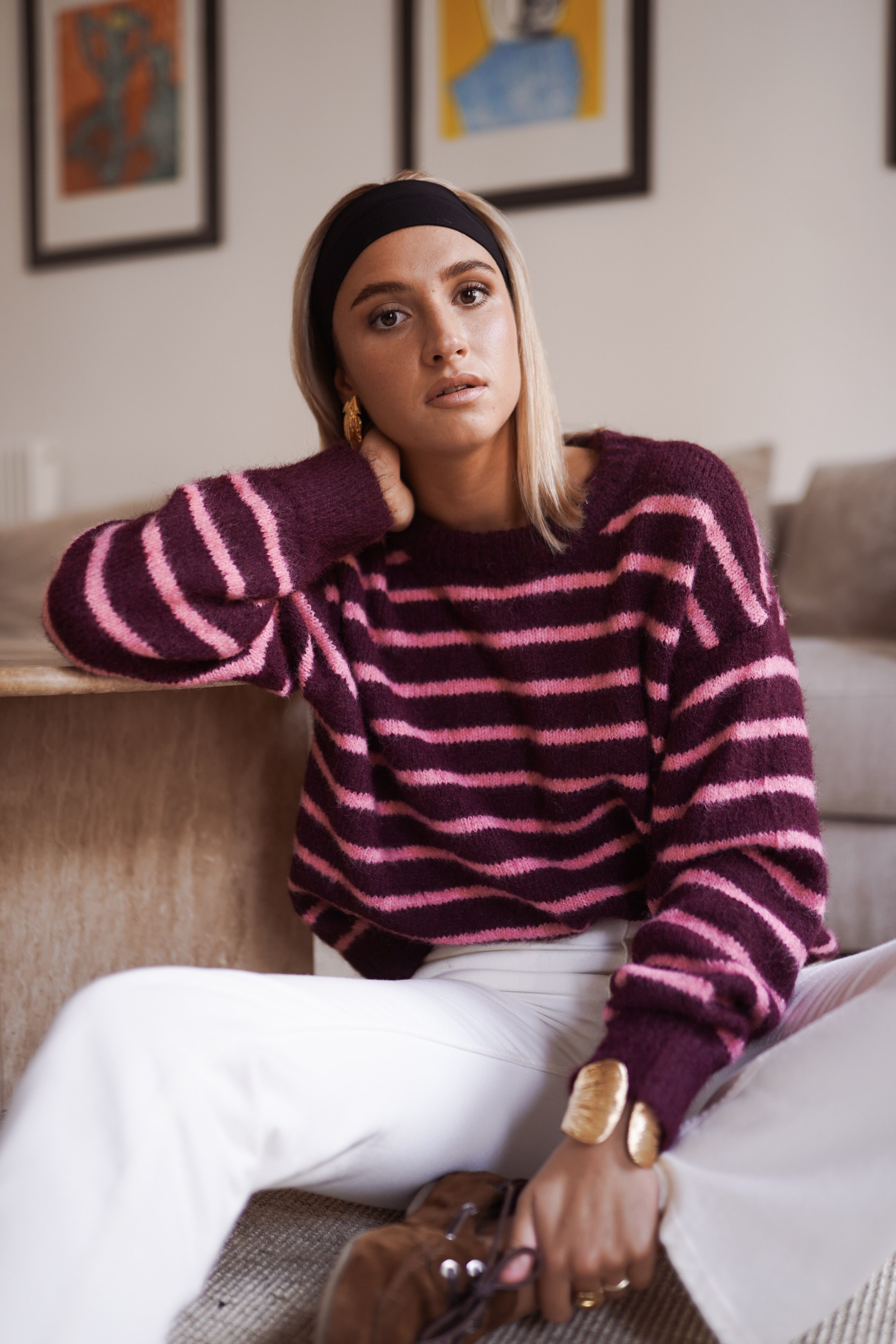 Violette Striped Sweater - Bordeaux/Pink