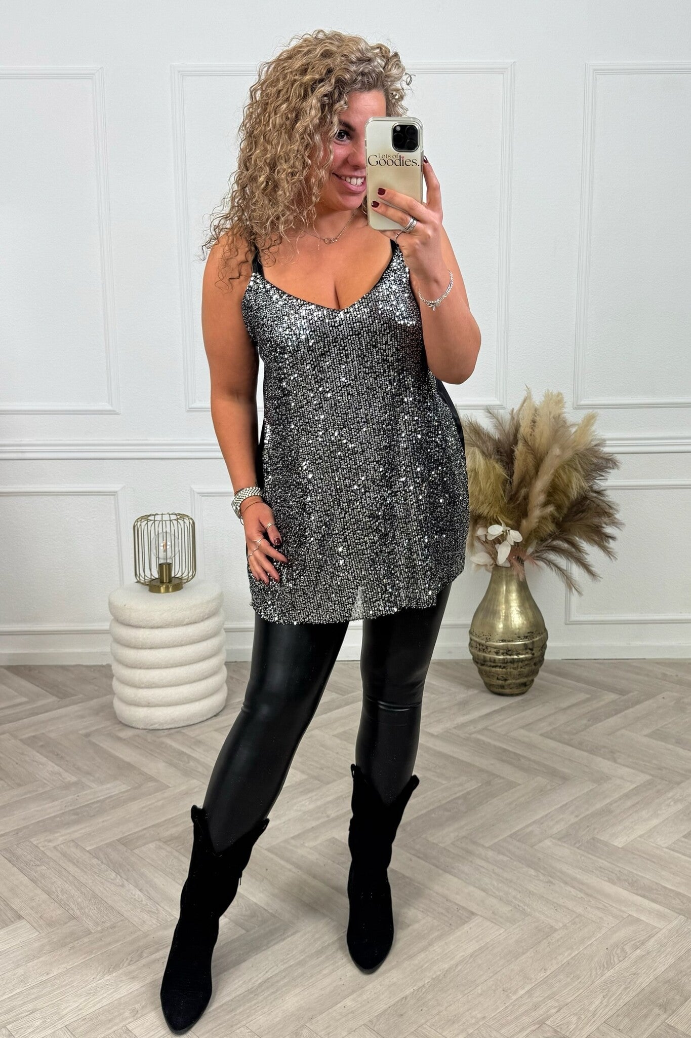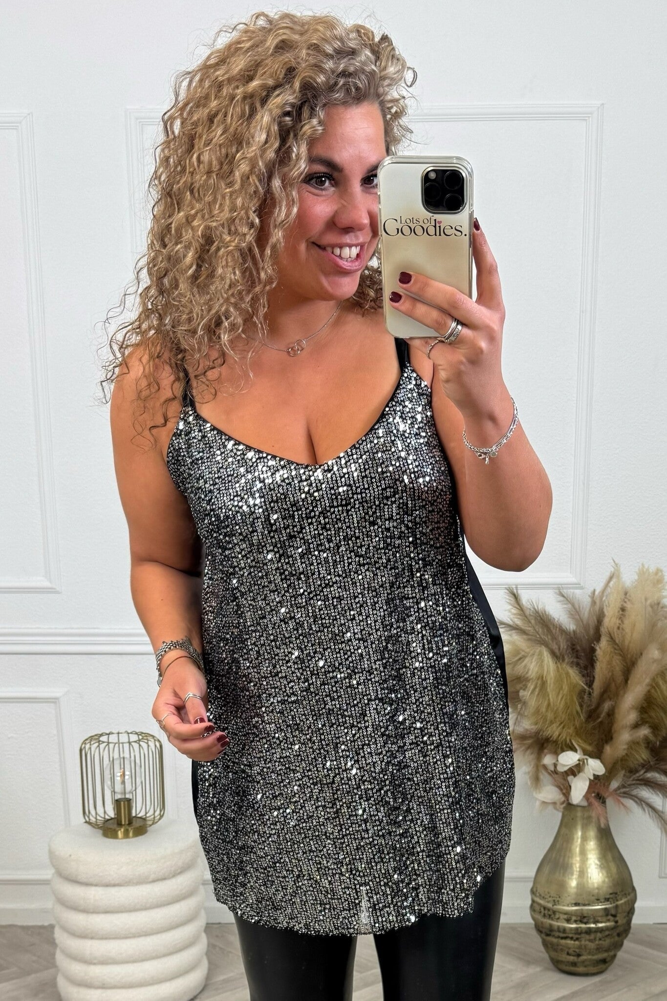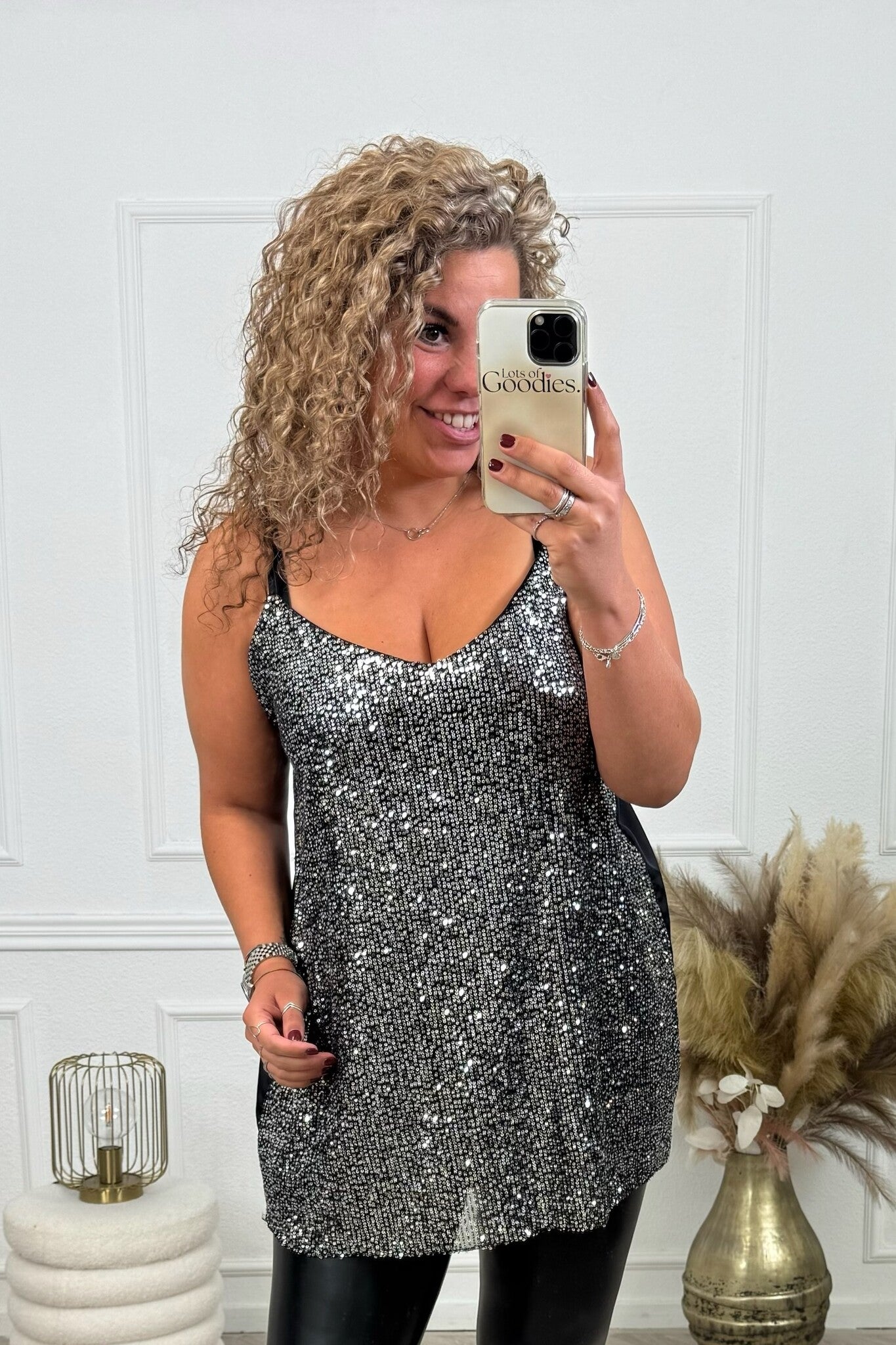 Shop dit superleuke glitter topje nu voor de feestdagen, verkrijgbaar in 7 kleuren! Shop hem nu in black/silver.