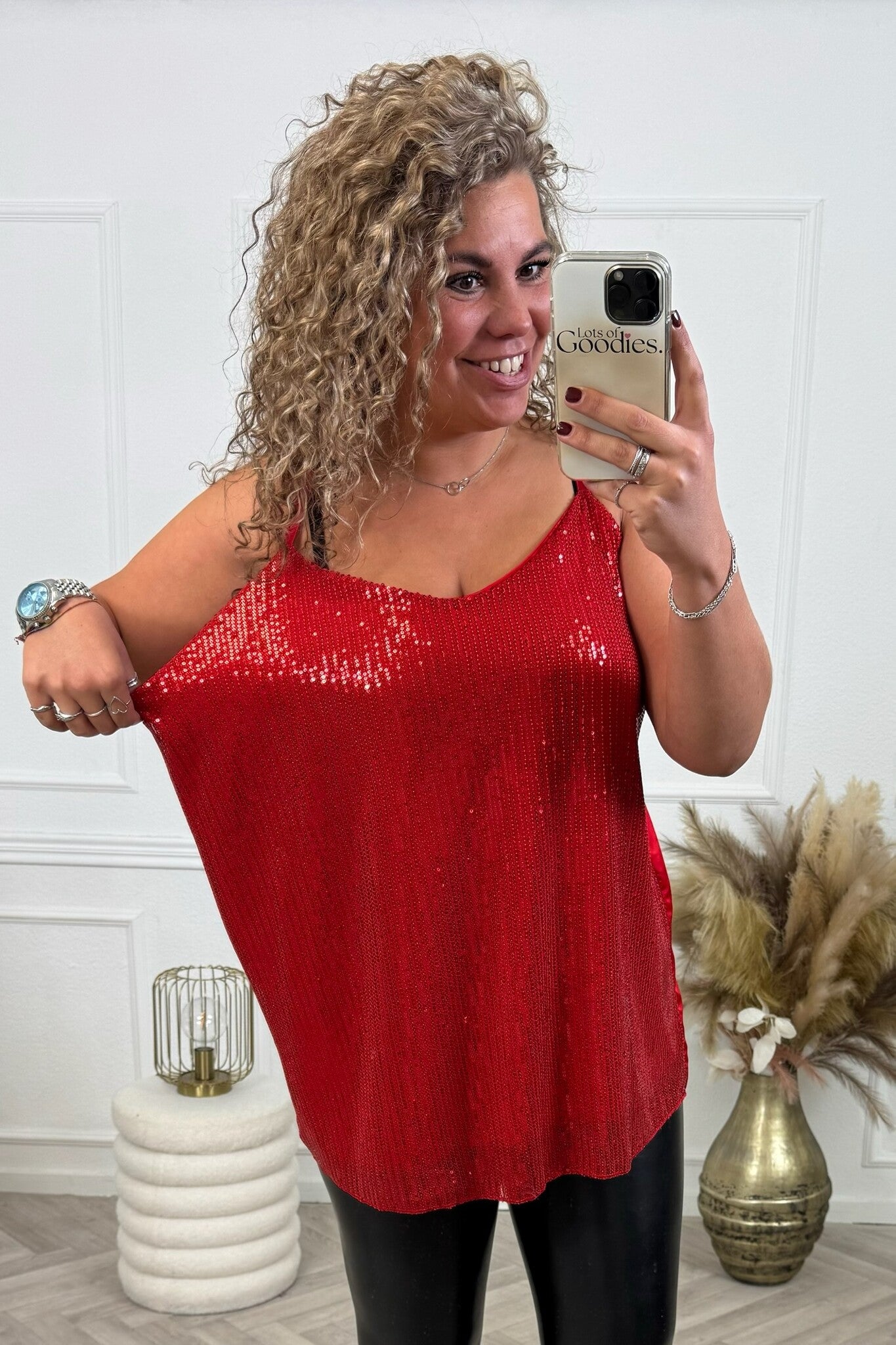 Shop dit superleuke glitter topje nu voor de feestdagen, verkrijgbaar in 7 kleuren! Shop hem nu in red.