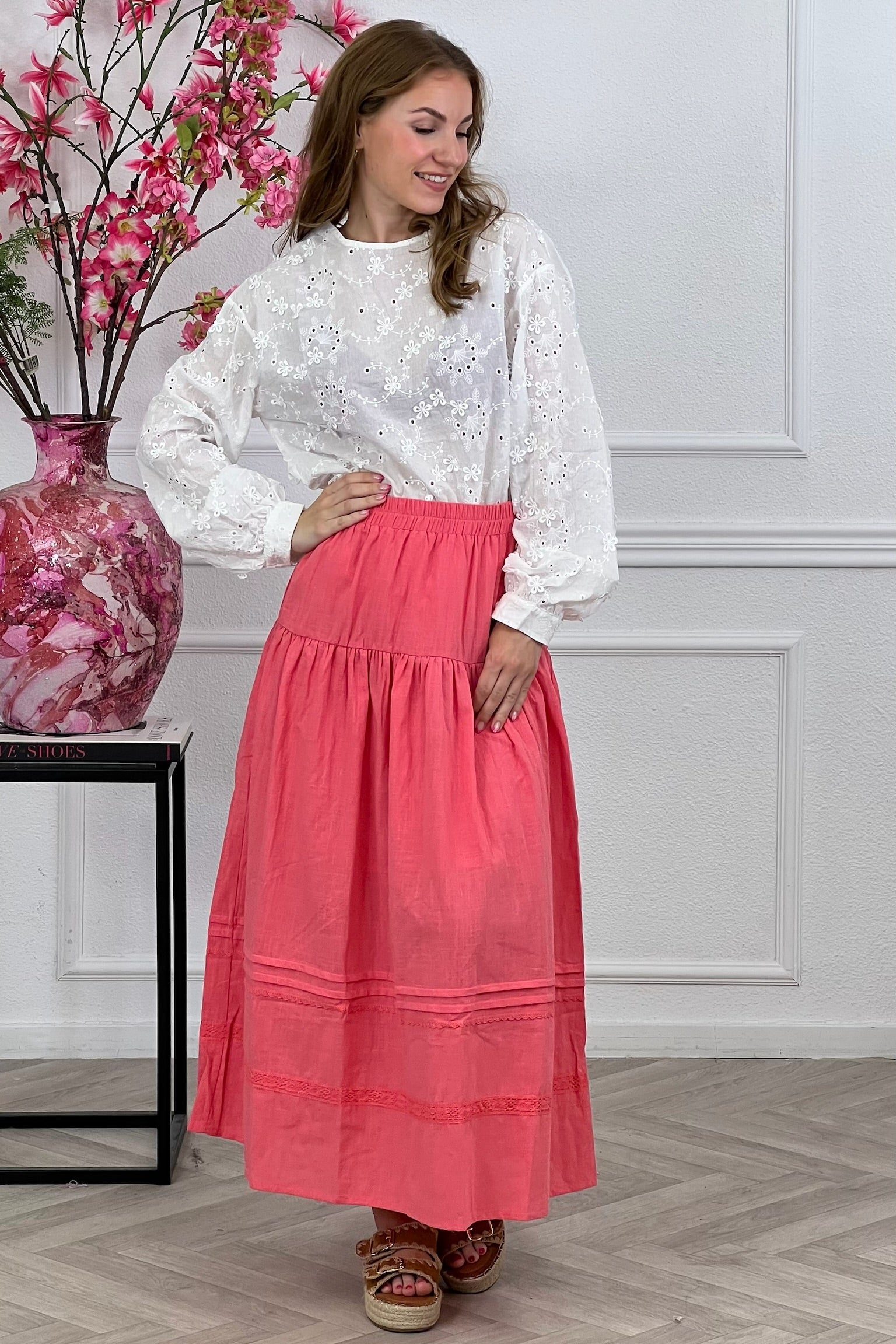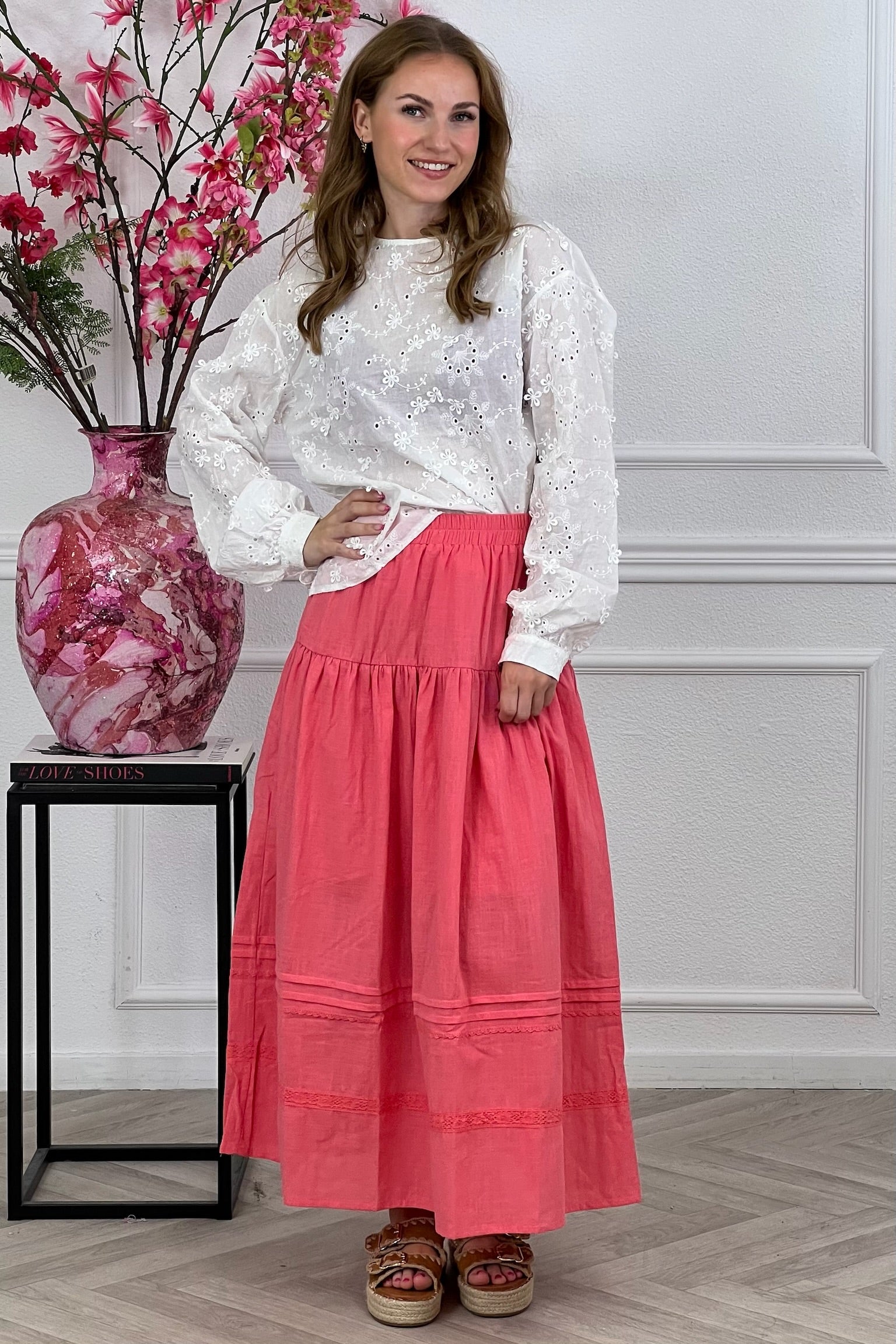 Deze superleuke blouse heeft een geborduurd bloemen patroon en lange mouwen, zo leuk! Shop hem nu in white.