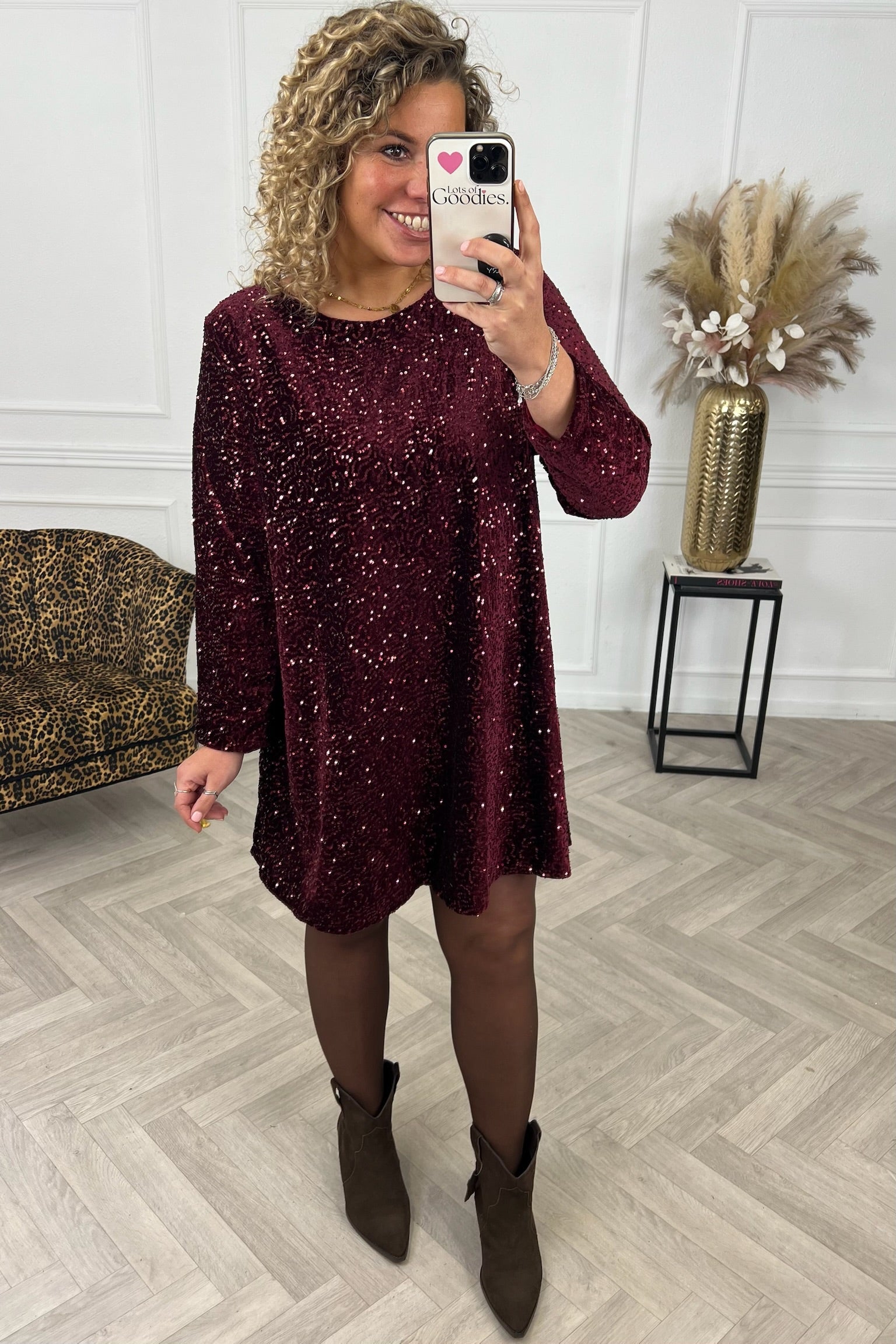 Hele leuke pailletten jurk met een strik op de achterkant! Perfect voor de feestdagen of gewoon voor zomaar ;) Shop nu de perfect bow glitter dress in het bordeaux.