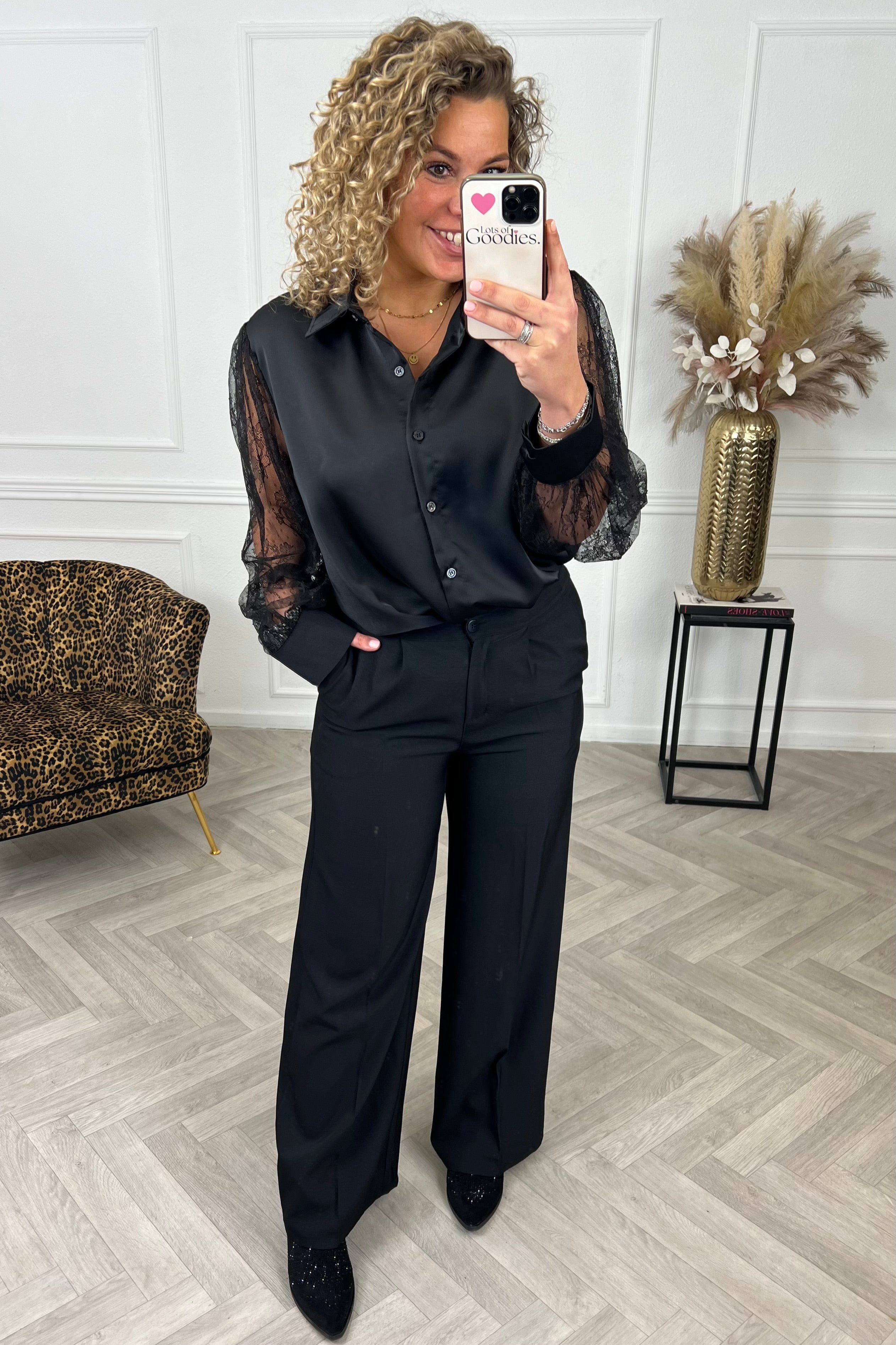 Een super mooie blouse! De satijnen stof in combinatie met de kanten mouwen zorgt voor een elegante uitstraling. Shop de silky lace sleeve blouse daarom nu in black!