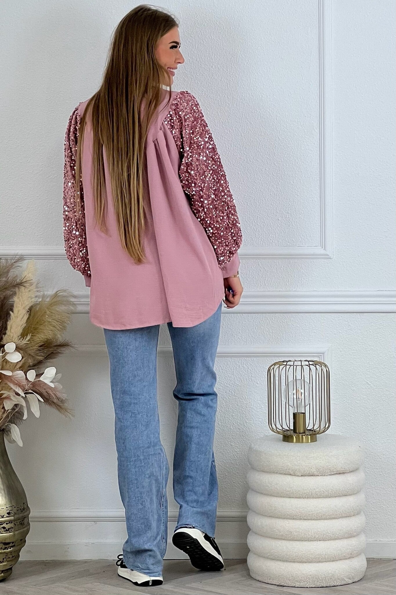 We hebben een super leuke blouse binnen met glitters. Ideaal voor de feestdagen! Shop hem nu in pink.