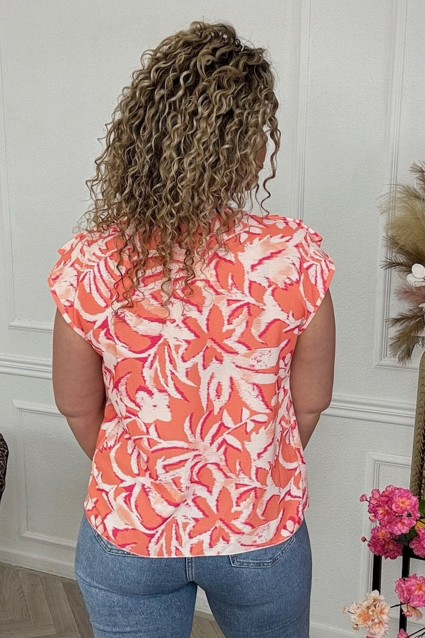 Deze heerlijke waterfalltop doet zijn werk uitstekend: te dragen met elk figuur! Shop hem in deze leaves print orange!