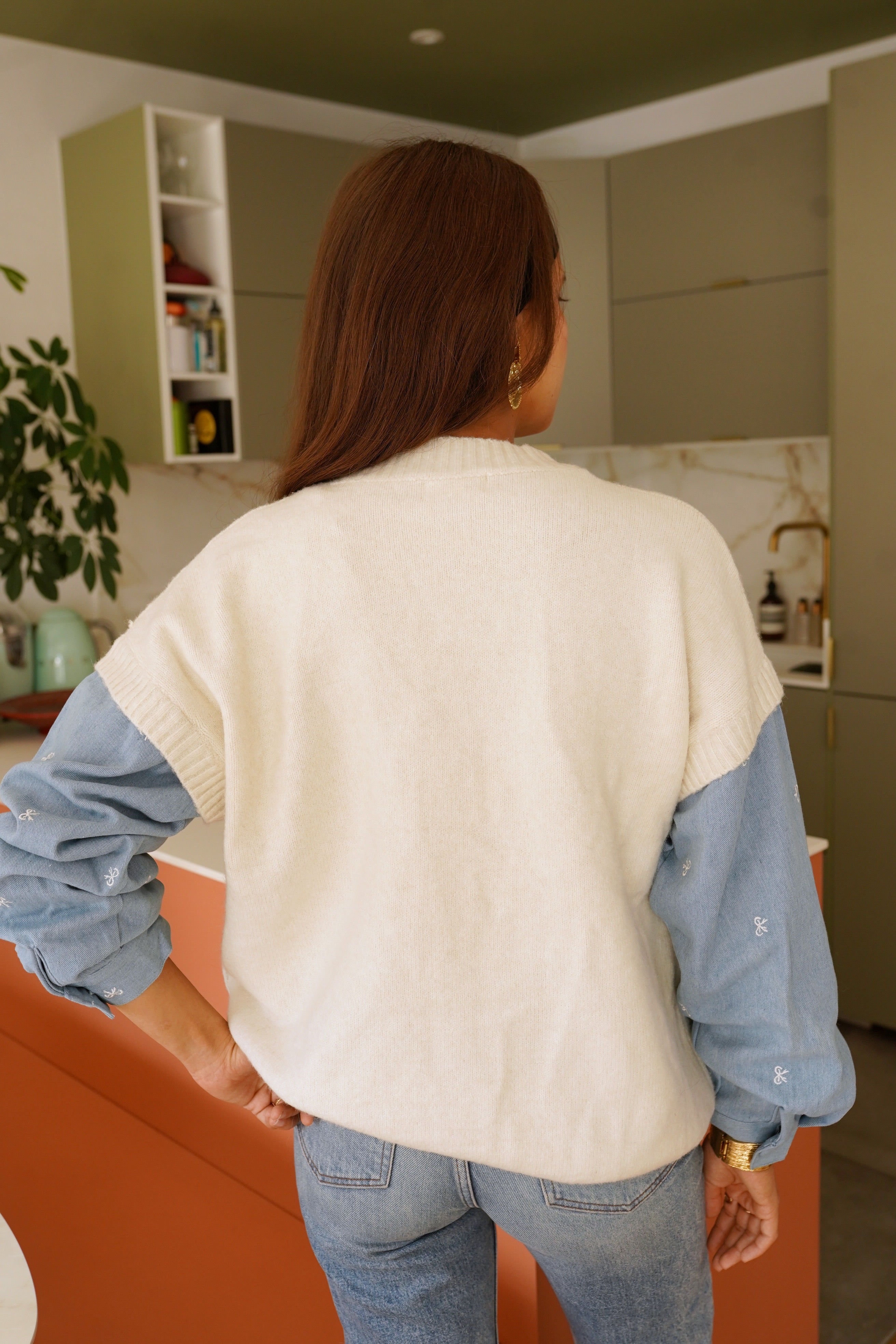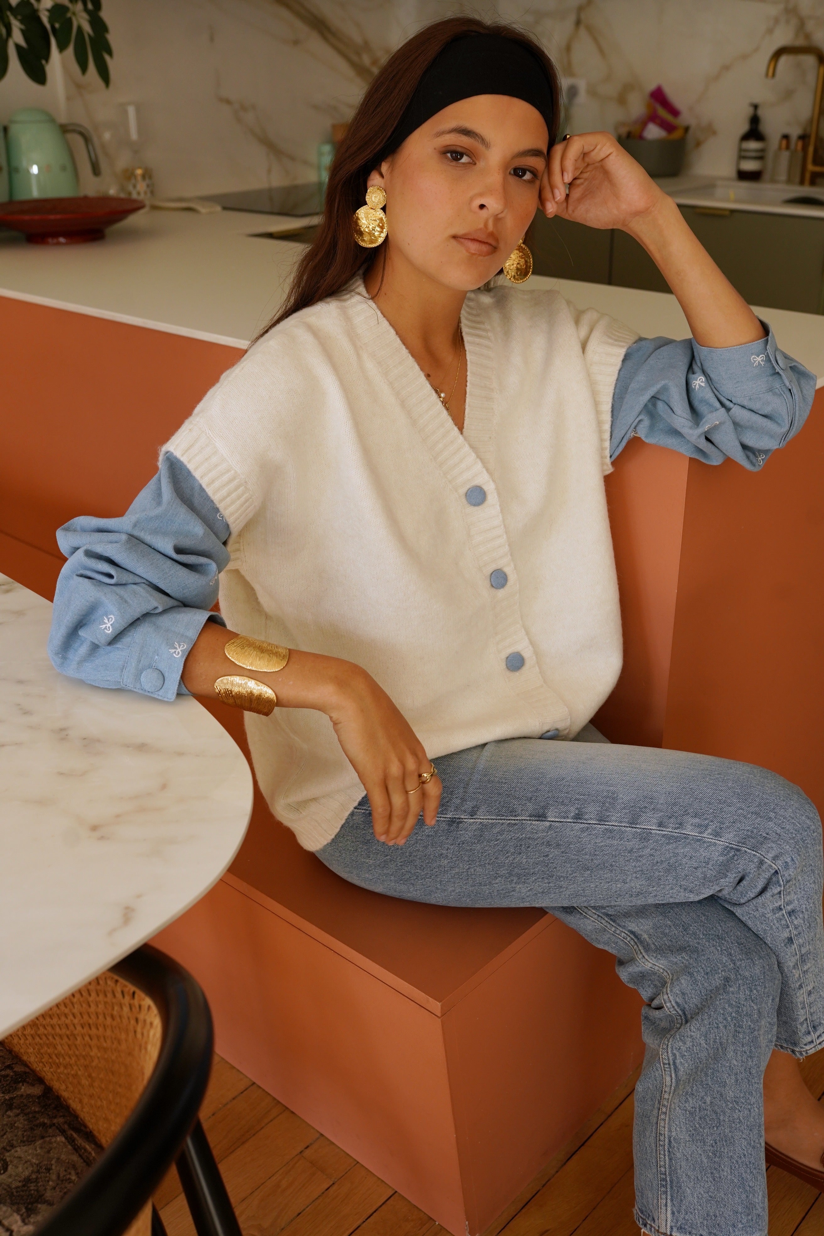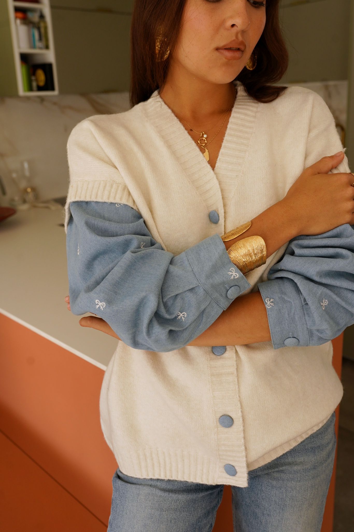 Wauw! hoe leuk is dit vest?! De mouwtjes met strikjes zijn een ontzettend leuke aanvulling op dit vest! Shop de bow blouse cardigan nu snel!