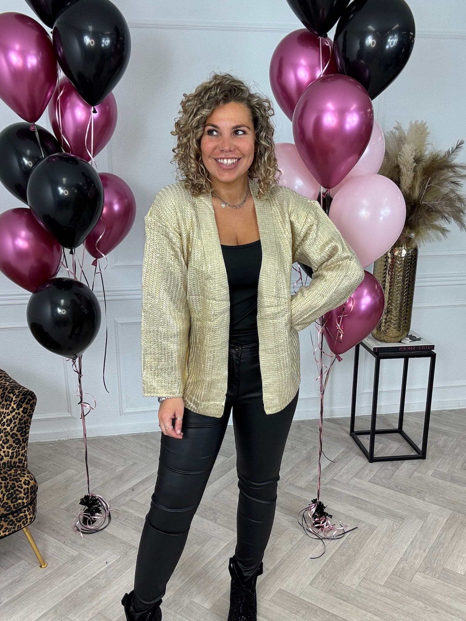 Dit is echt een fantastisch vest! Niet alleen voor de feestdagen, maar ook gewoon om je outfit net dat beetje extra te geven! Shop de gold coated vest nu in beige.