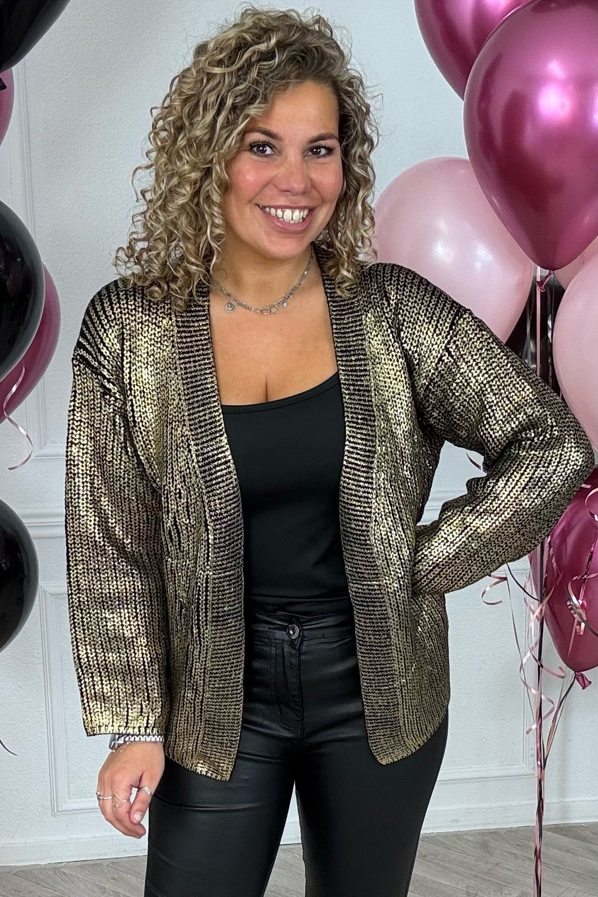 Dit is echt een fantastisch vest! Niet alleen voor de feestdagen, maar ook gewoon om je outfit net dat beetje extra te geven! Shop de gold coated vest nu in black.
