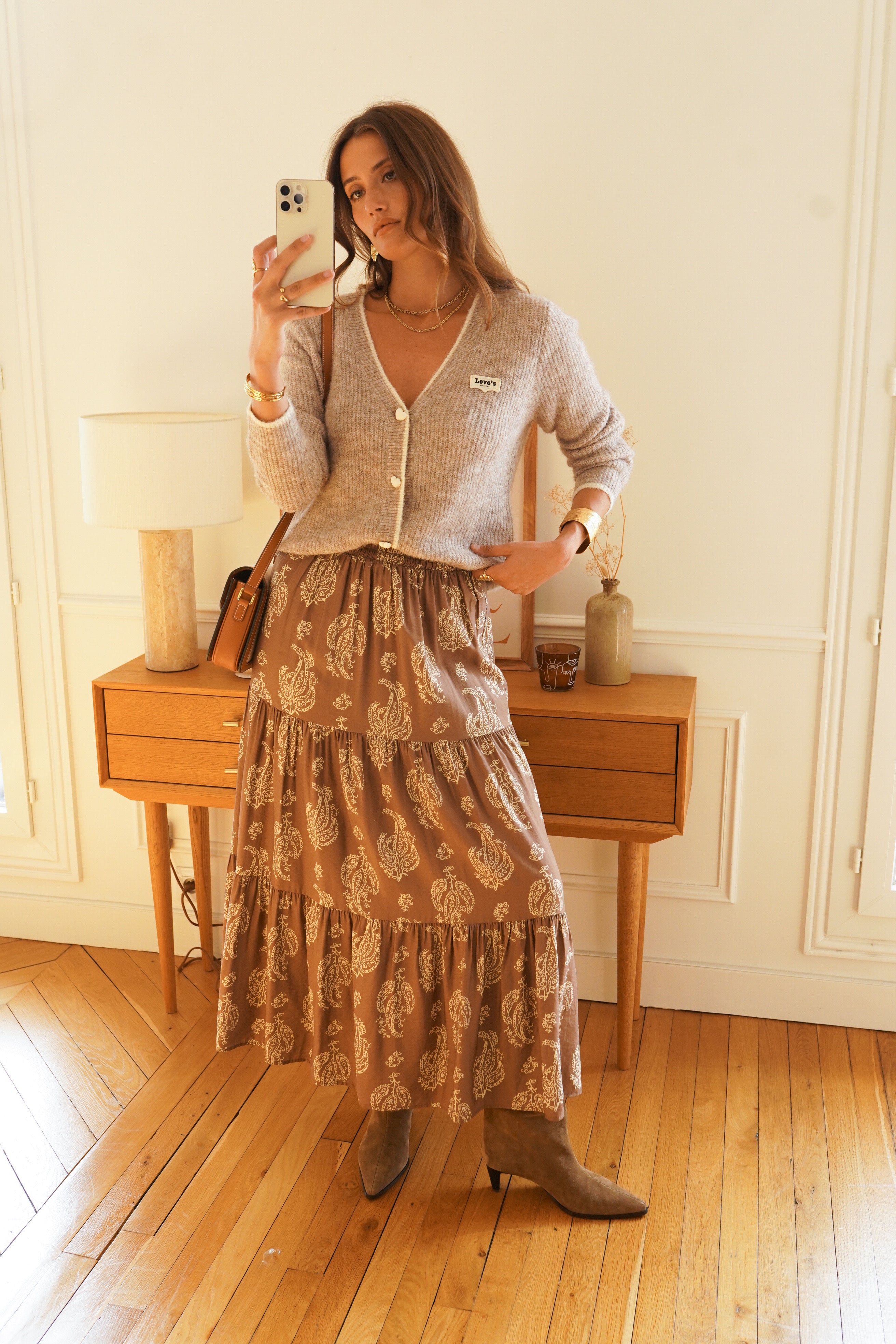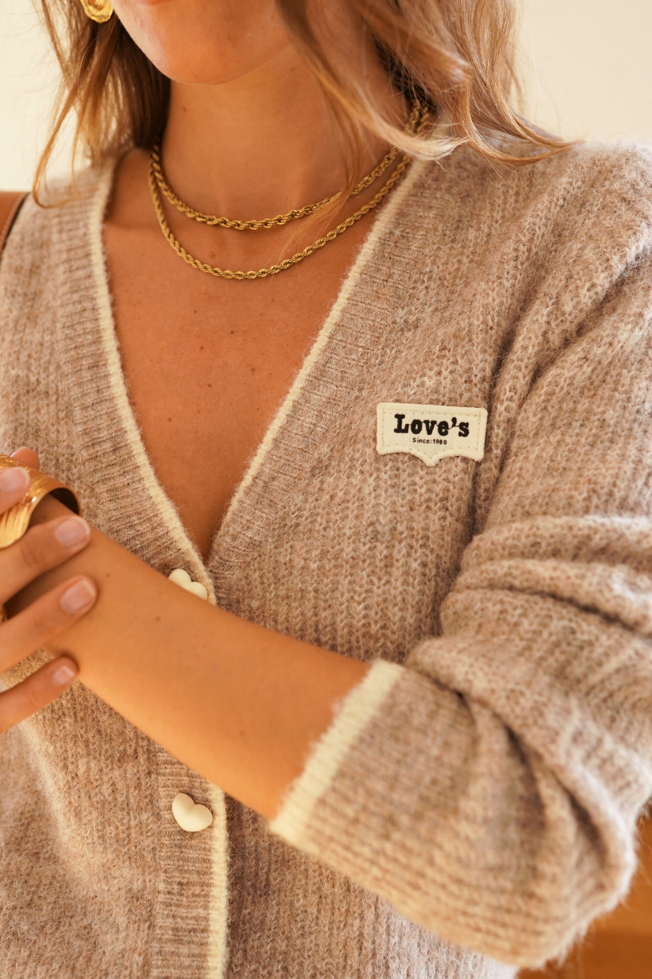 Wat een fijn nieuw vest met mooie hartendetails. Het vest is taupe, met hartenknopen!