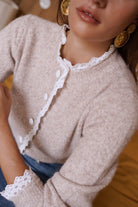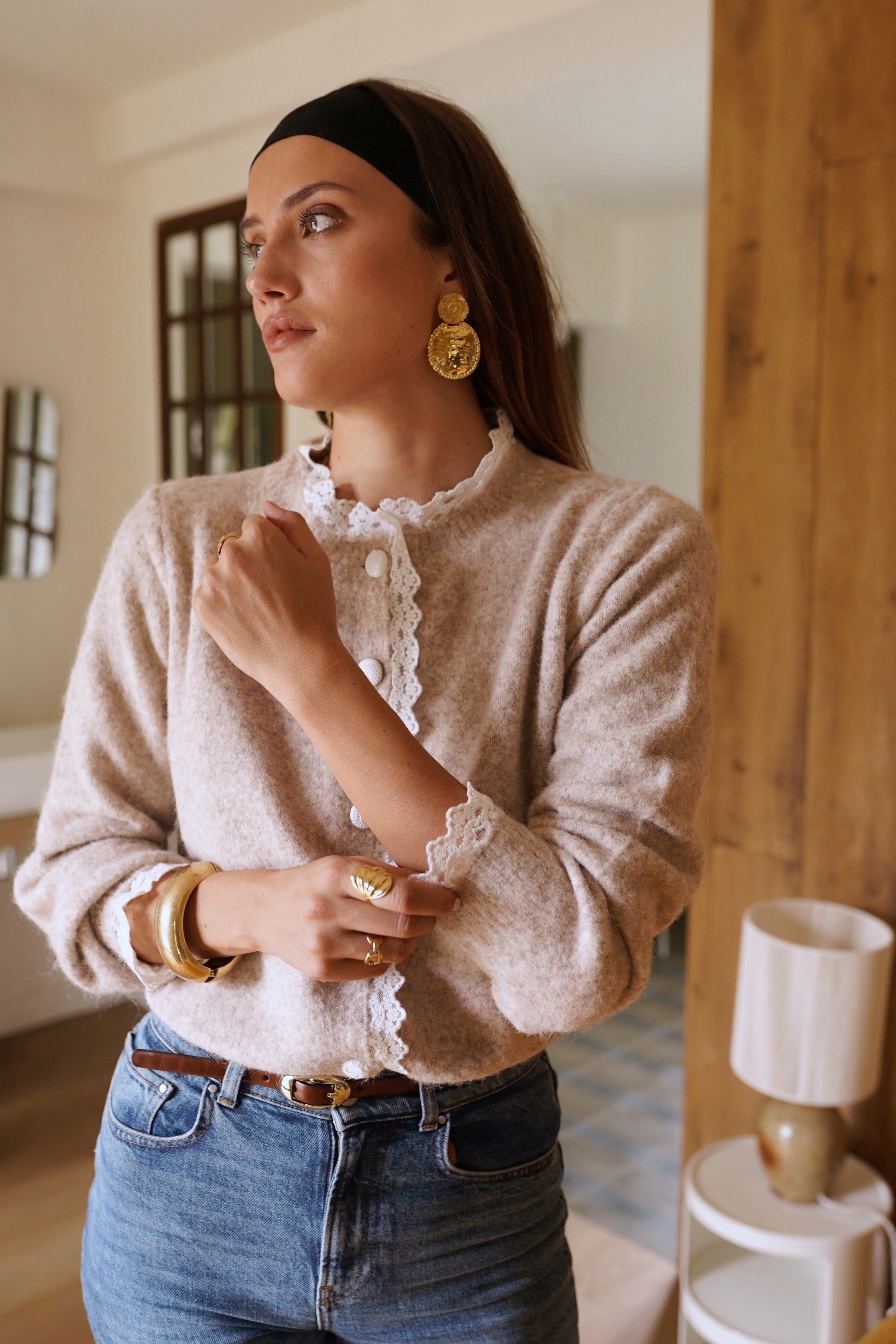 Wat een fijn nieuw vest, met mooie lacedetails. Het vest is licht-taupe. Shop hem nu nieuw online!