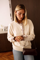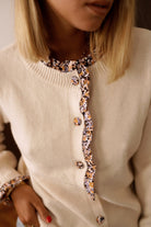 Wat een fijn nieuw vest, met mooie bloemendetails. Het vest is beige. Shop hem nu nieuw online!
