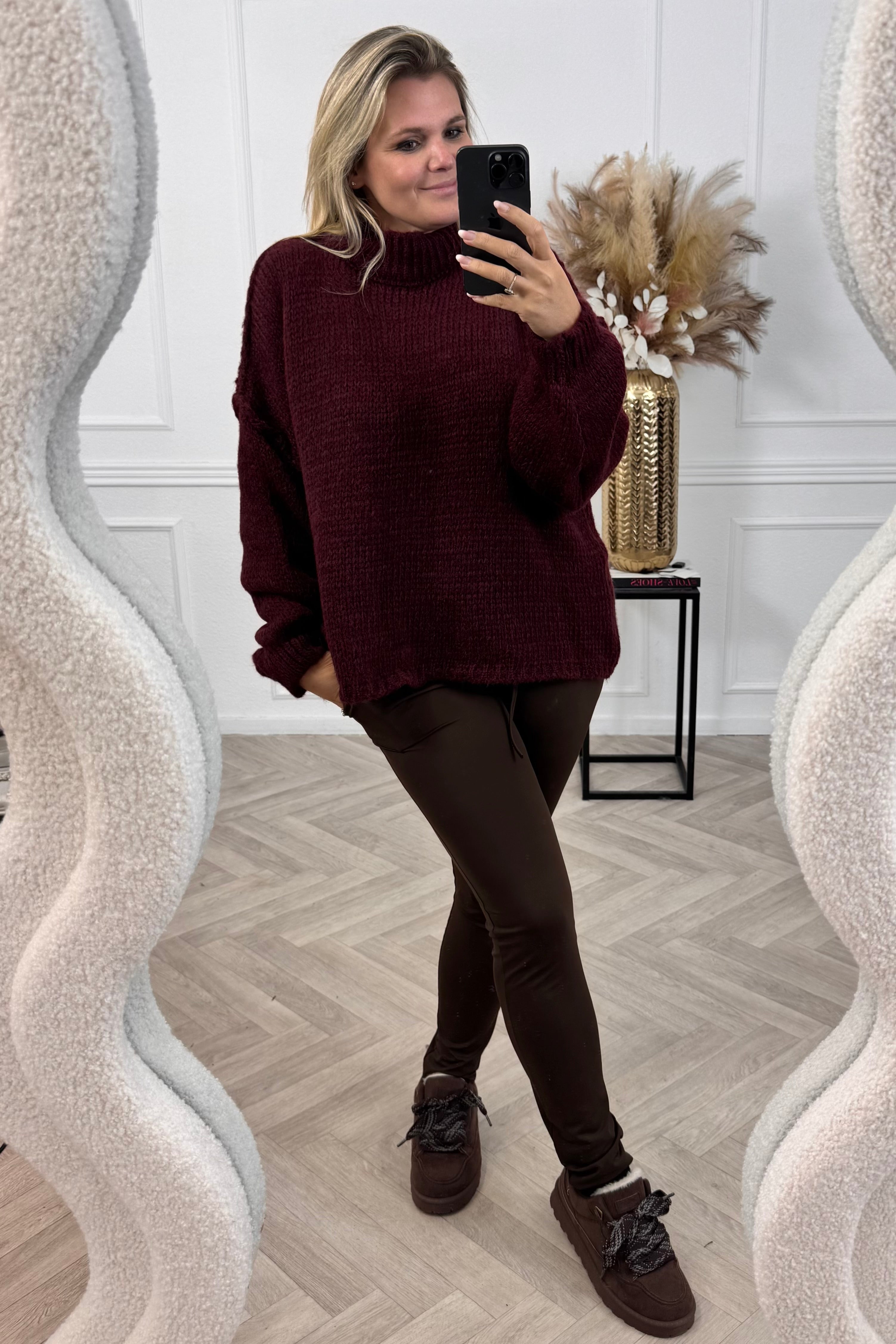 Ontzettend Leuke en Warme truien, met een turtle neck en trendy mauwen! Shop de turtle neck knitted sweater nu in burgundy!