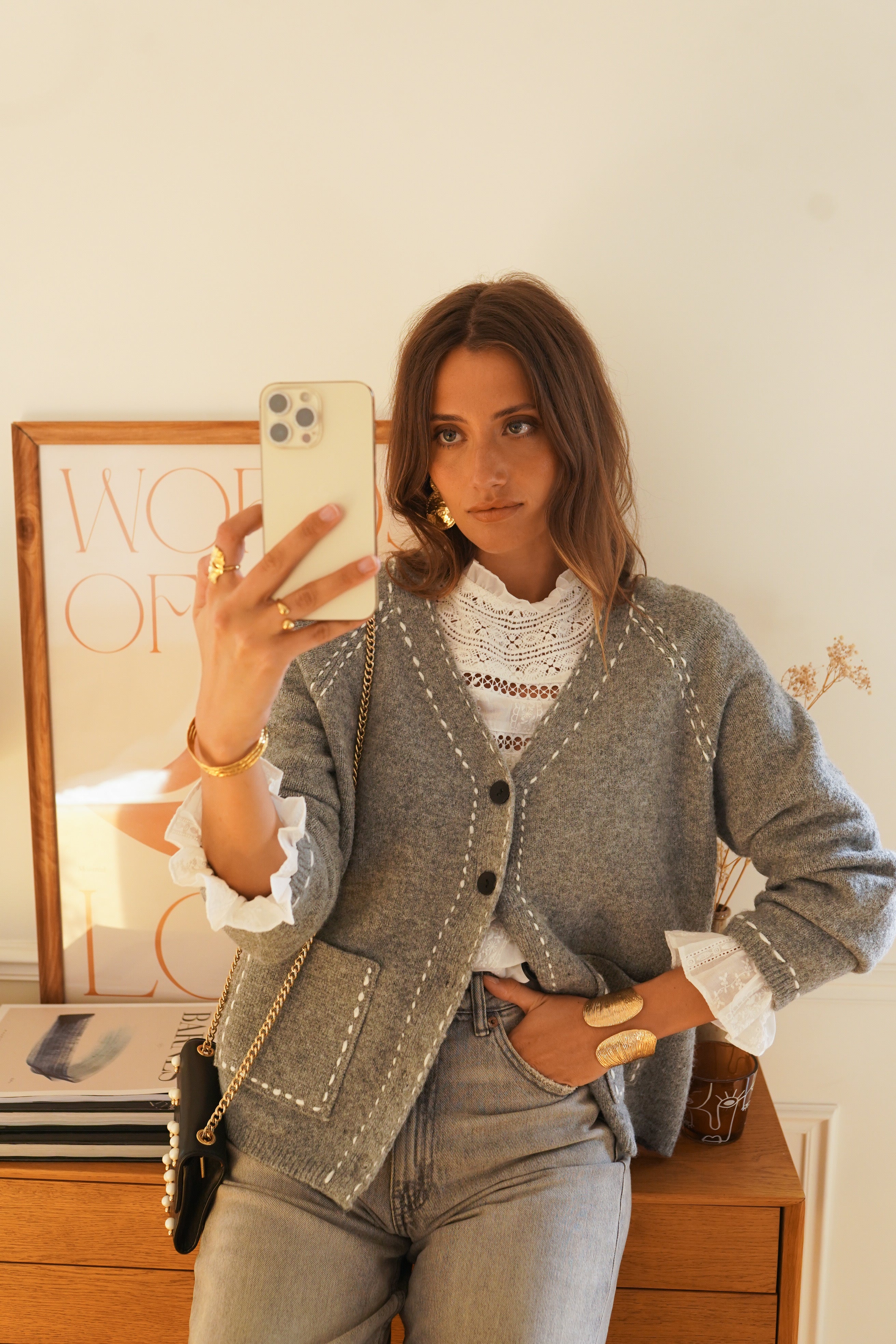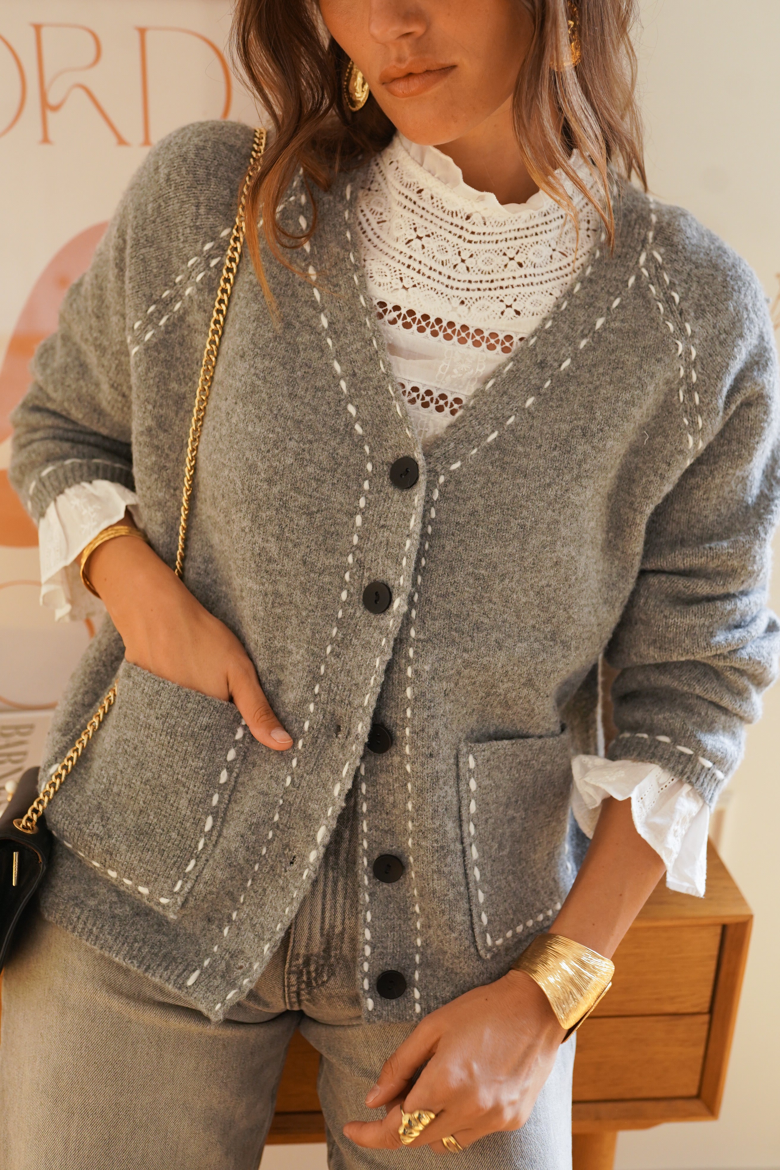 Dit prachtige grijze vest met mooie details op de zakken en boord shop je nu nieuw online!