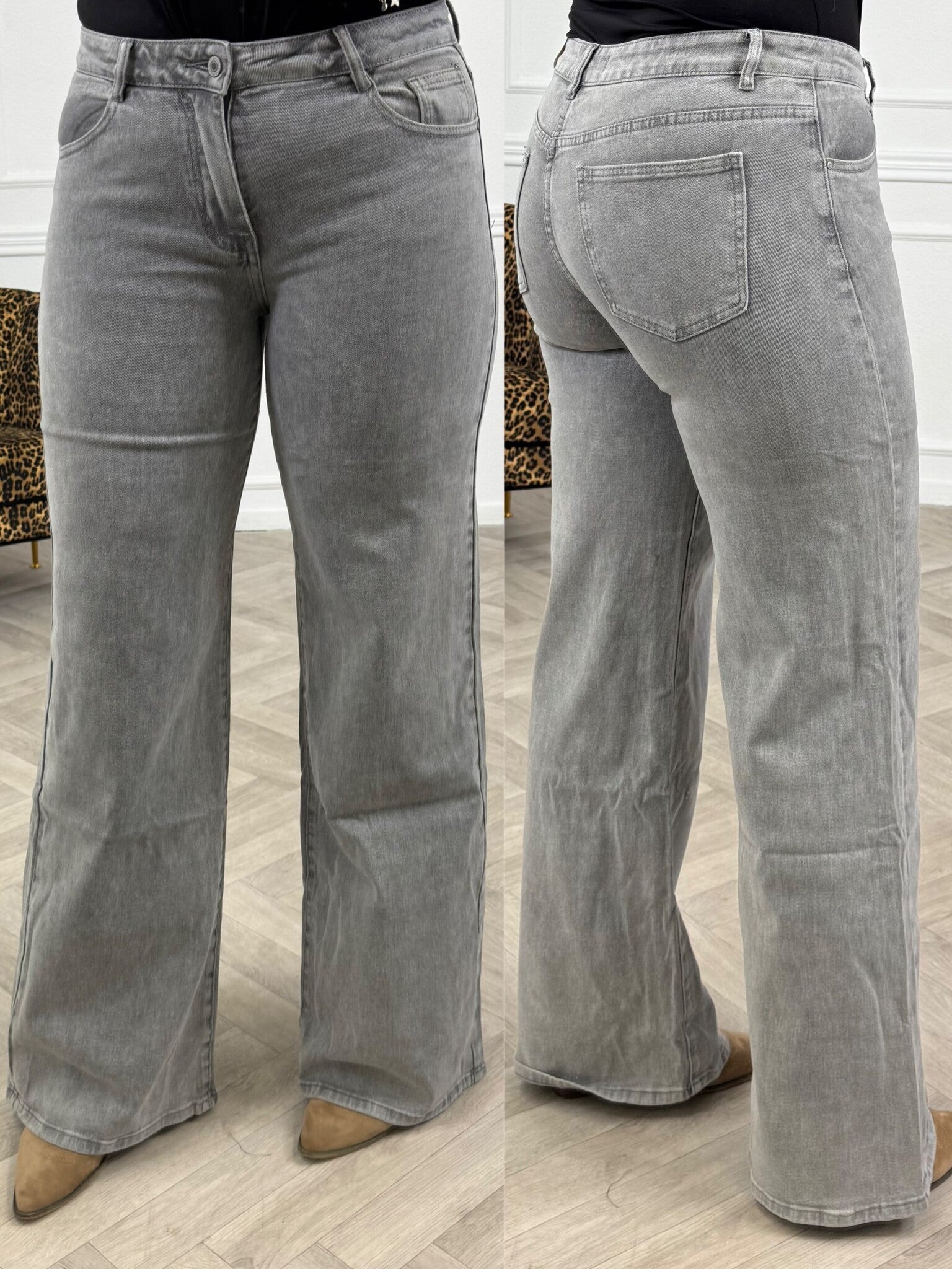 Bobby Wide Leg Jeans - Grey