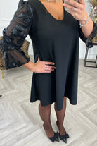 A Line Flower Mesh Dress - Black/Black