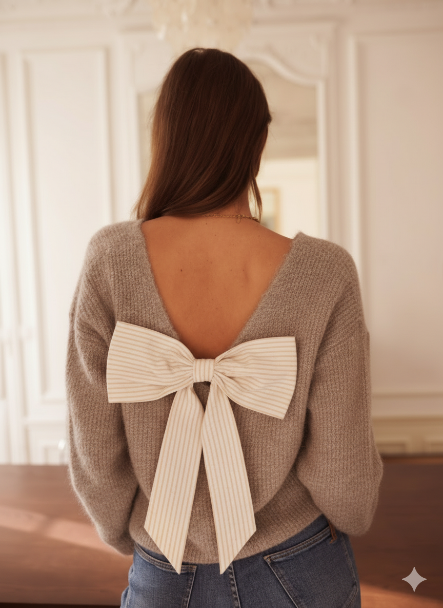 Amandine Bow Sweater - Taupe