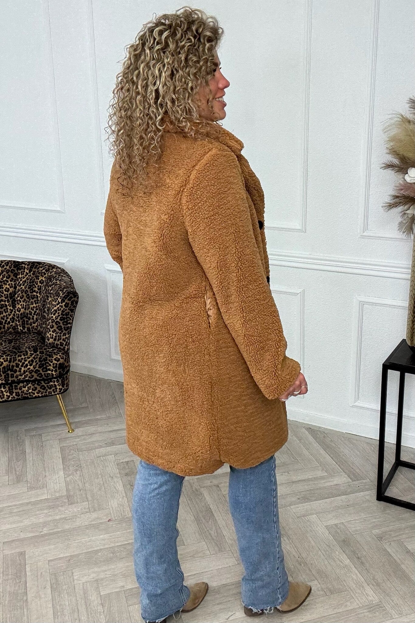 Wat een fijne teddy! Deze heerlijk zachte teddy is de ideale jas voor elk jaargetij! Shop hem met knopen aan de voorkant, zo blijf je lekker warm! Shop hem in caramel!