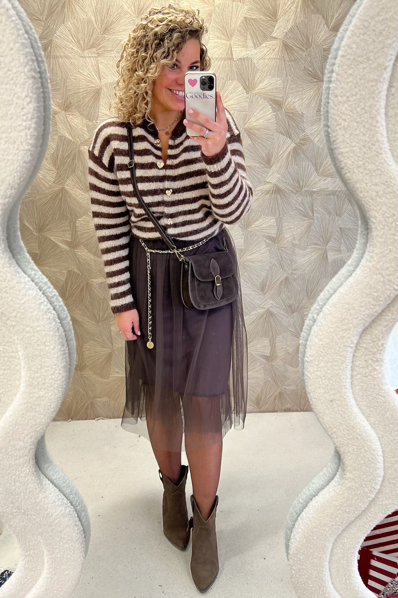 We hebben een mega trendy vest binnen! Het vest is gestreept in mooie kleuren bruin en de gouden knopen maken het vest helemaal af! Shop het ariane striped vest nu in brown/ beige.