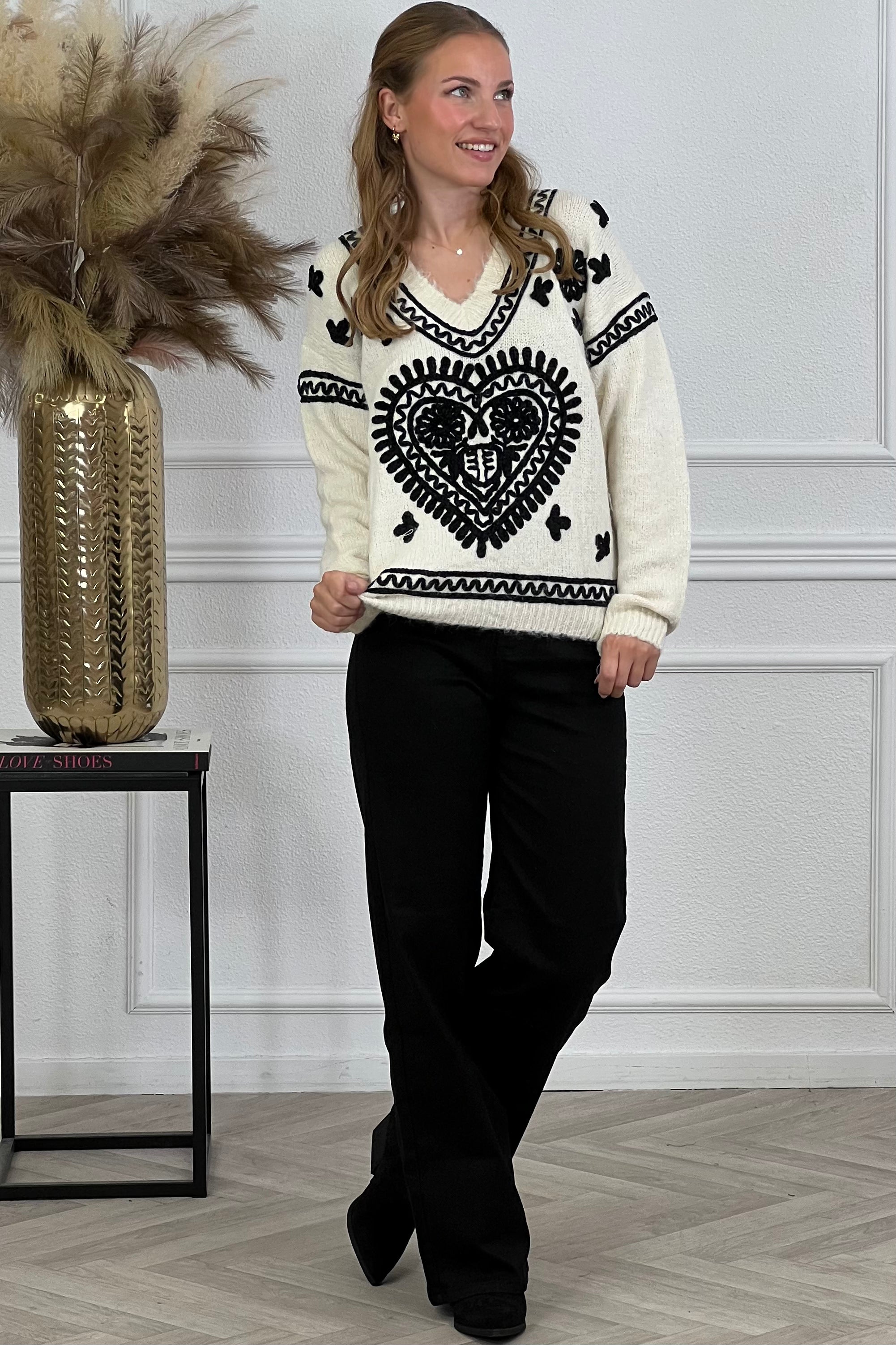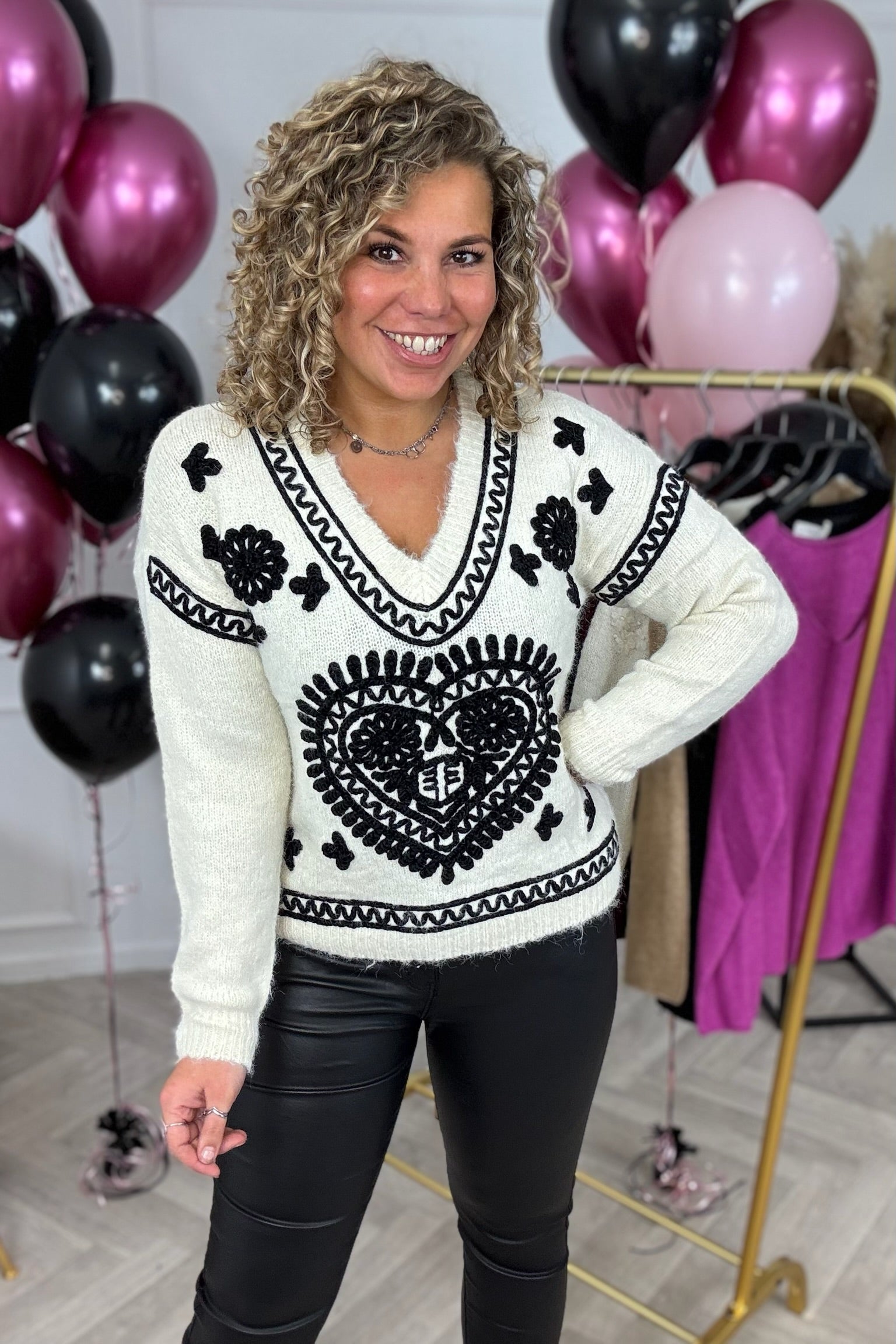 Wat een superleuke trui! Shop hem nu met een mooie hartjes print in white/black.