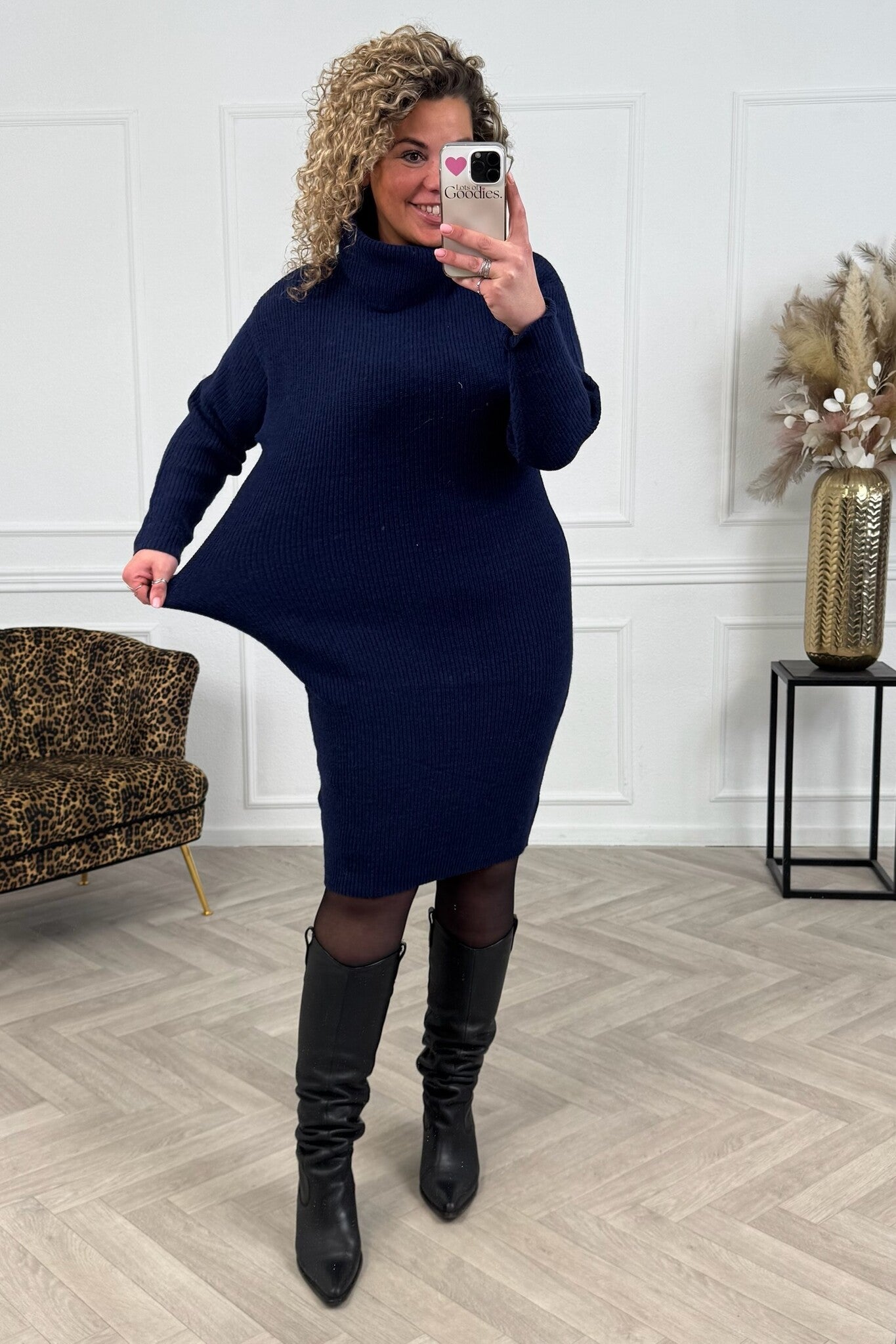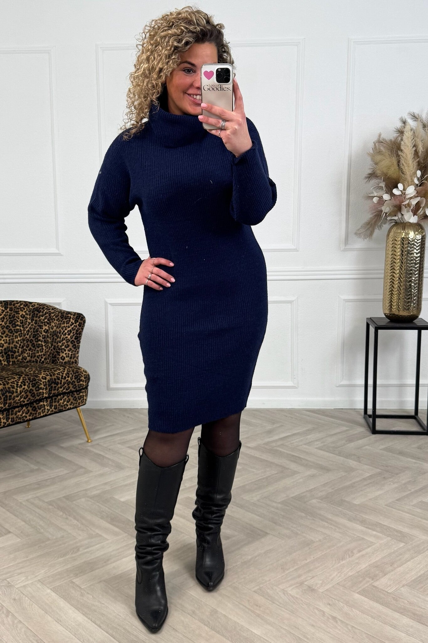Een fijn knitted jurkje met een coll! De jurk heeft veel stretch en sluit mooi aan! Shop hem in navy!