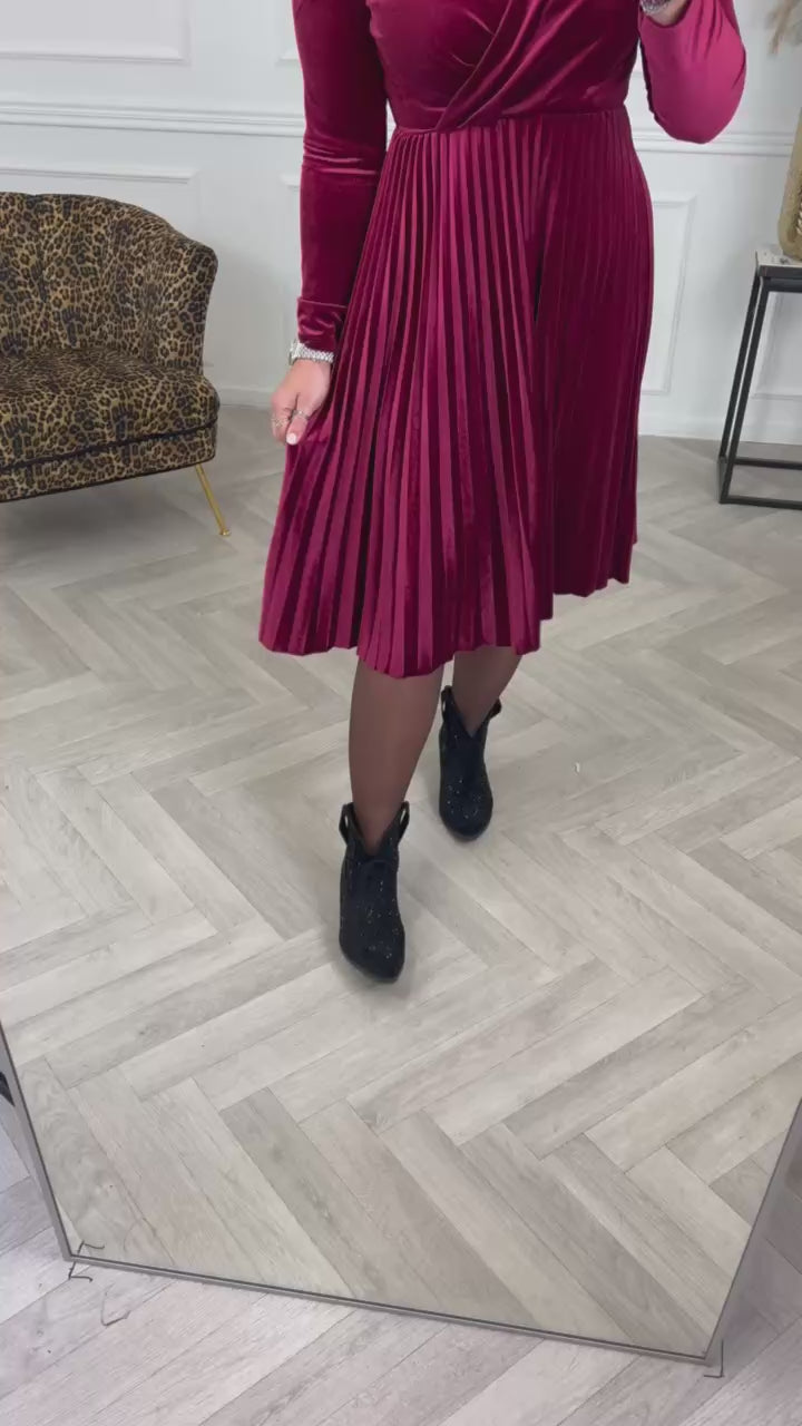 Wow! In onze Bella Dress dress waan je je tijdens elk feestje in Italie! Shop deze prachtige plissejurk nu in bordeaux!